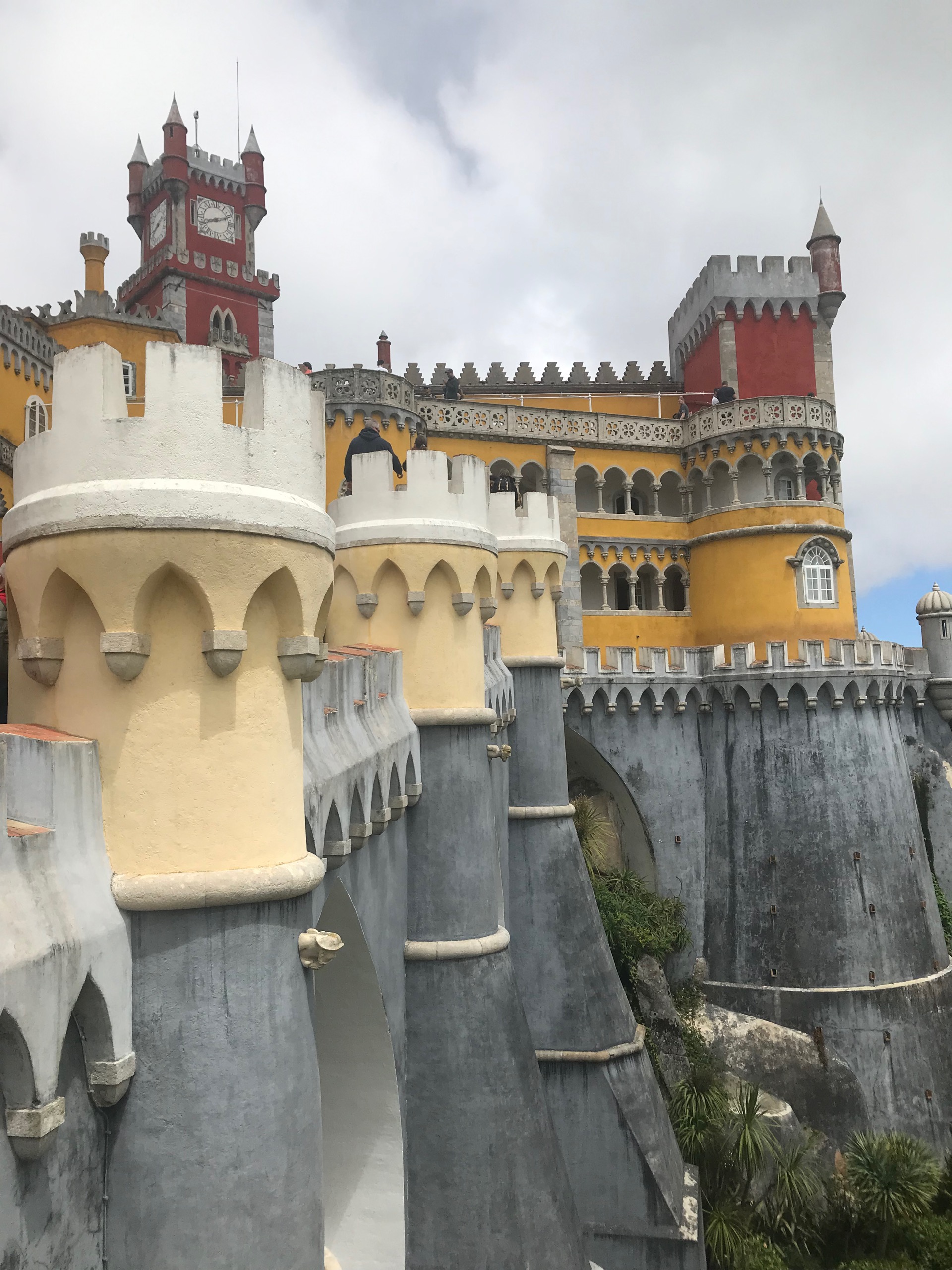 We eagerly toured this fantasy palace, a UNESCO World Heritage Site. Fanciful colors, Arabic arches, turrets, and a massive clocktower adorn the outside. Inside, elaborately decorated spaces, Royal relics, and historical artifacts entertained. The Palace is a Must-See when you visit southern Portugal.
