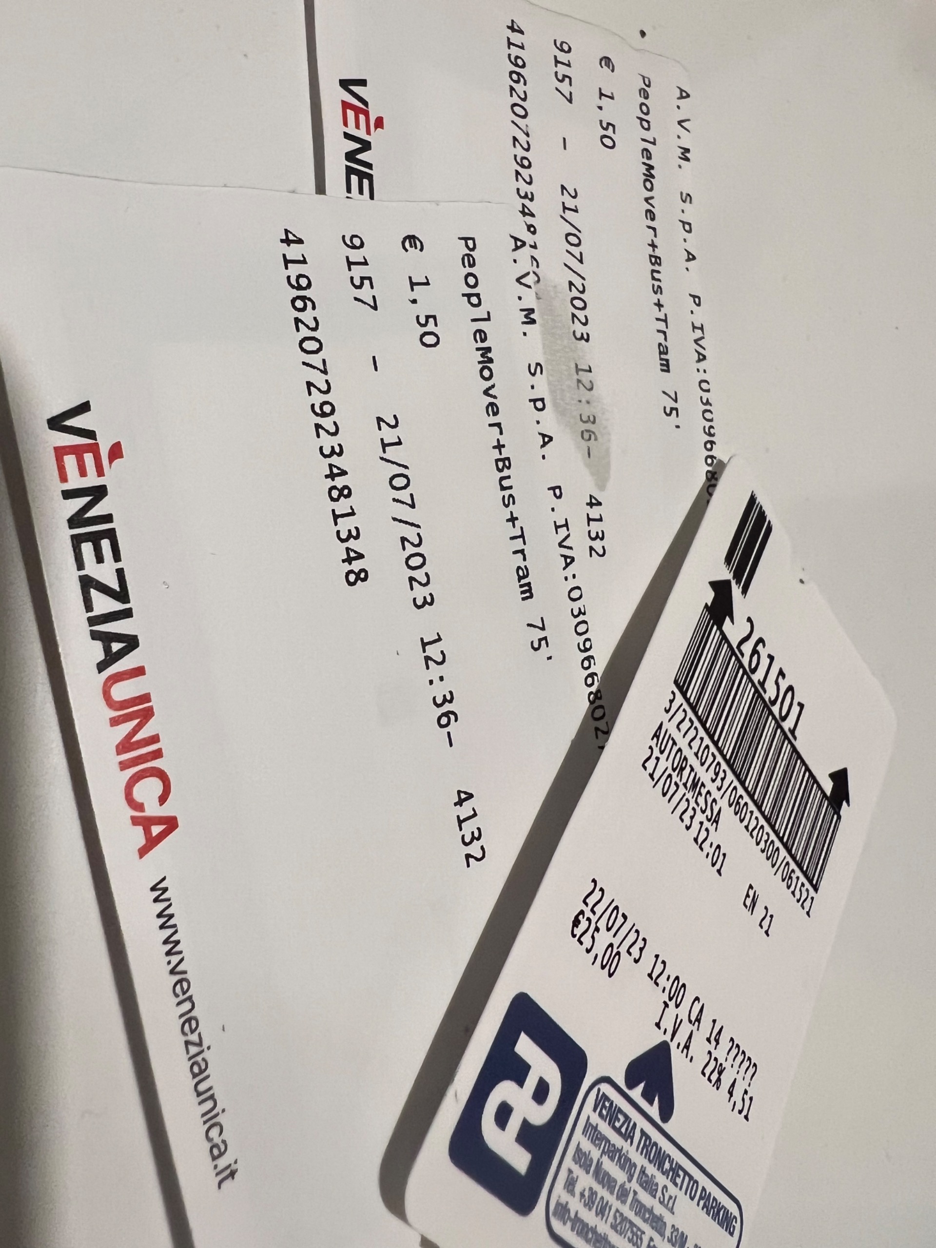 Back to the city trip…. You enter Venice from the large entry bridge and stay on the right to park at TRONCHETTO VENEZIA PARKING. A huge parking lot where you have multiple layers to park and thats where you wanna be. The floors have signs and numbers and its adviced to take a picture when you park so you can easily find the car when you return. The parking has toilets and elevators. You can also buy a drink at the soda machines. Its adviced to not leave any thing of value in the car. The fact that its in sight might attrack the non tourist kind of people that will ruin your day when they break into your car. After you parked your car you walk to the left side ( also the exit when you leave ) and go to the VENEZIA UNICA ~ PEOPLE MOVER. That is the train ( electric ) that will take you to Venice waters and the central bus station in 5 minutes. It has three stops.