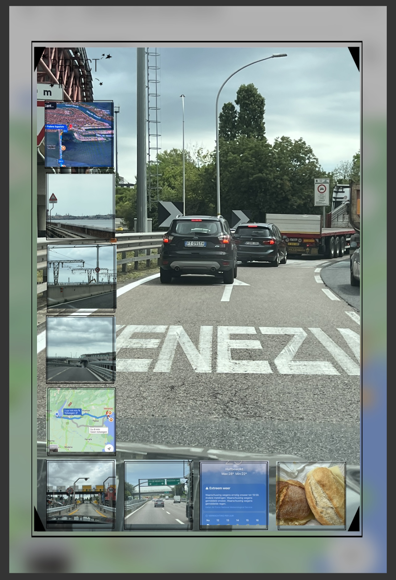 After an hour and 45 minutes the harbour and the huge parking lots are visible from the road. You arrive in Venice over the large entry bridge. The Venice letters on the road are your guide to romance and history today. In the far you see the cruise ships, not near the city but at tender distance and for us a sight for our eyes. We never on the cruises we did with the famous italian shipping company MSC, docked in Venice but we will some day.
