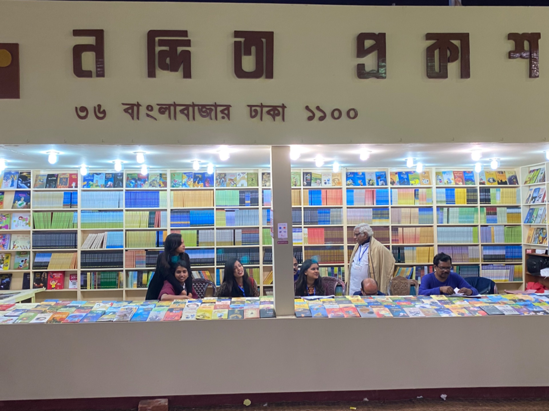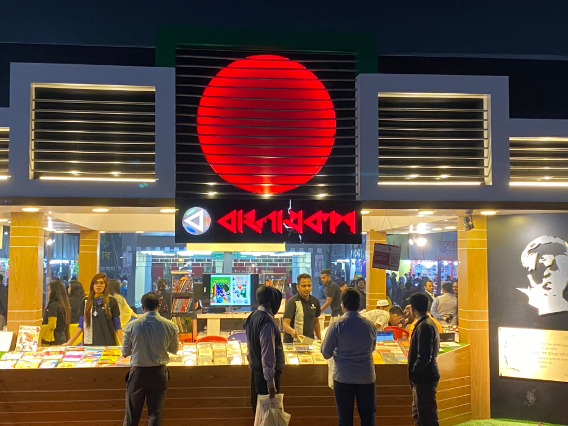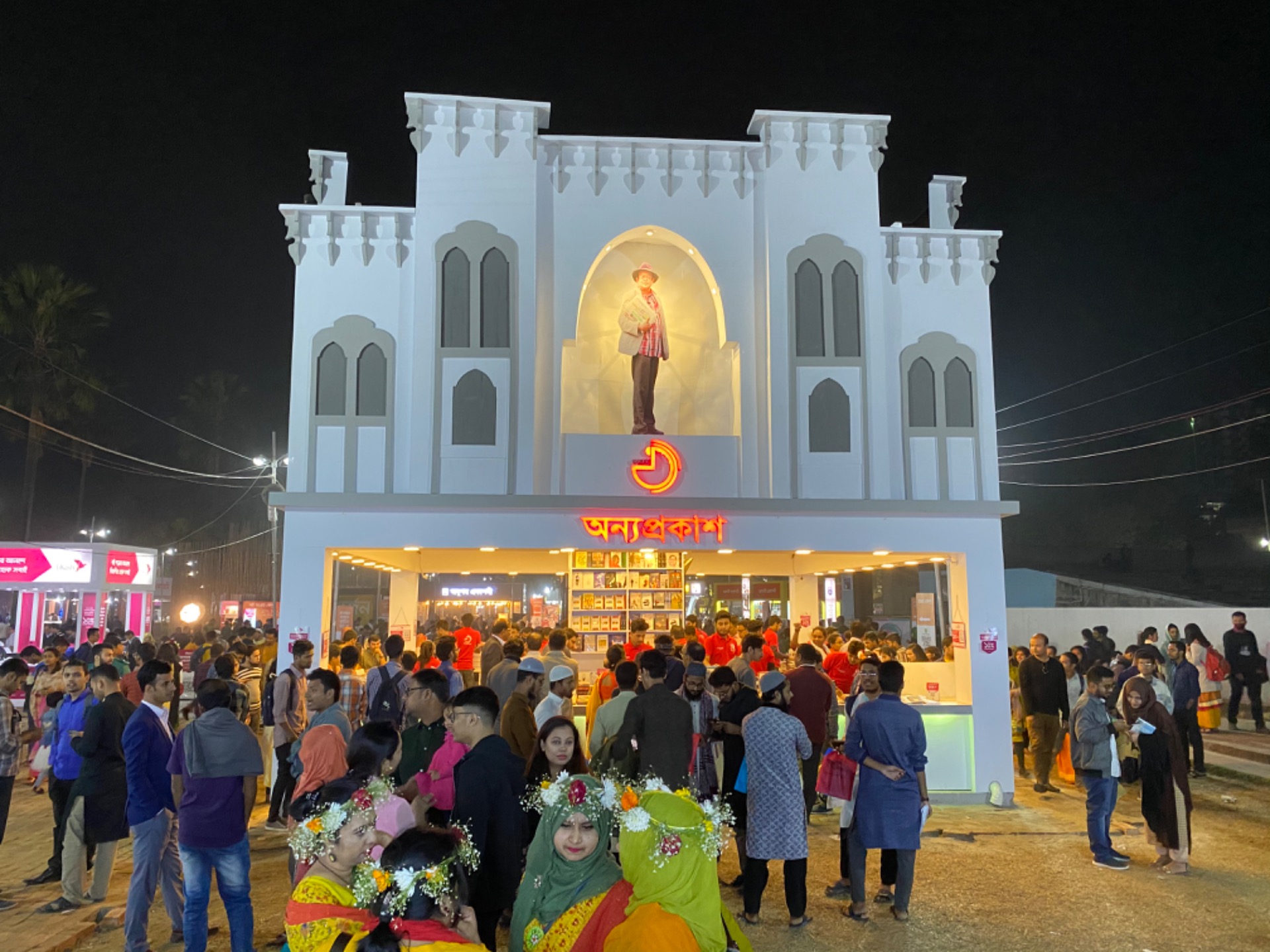 There was a very much popular writer of the country named Humayun Ahmed who died recently. Many stall owners were showing respect by making statues of him in their stalls.