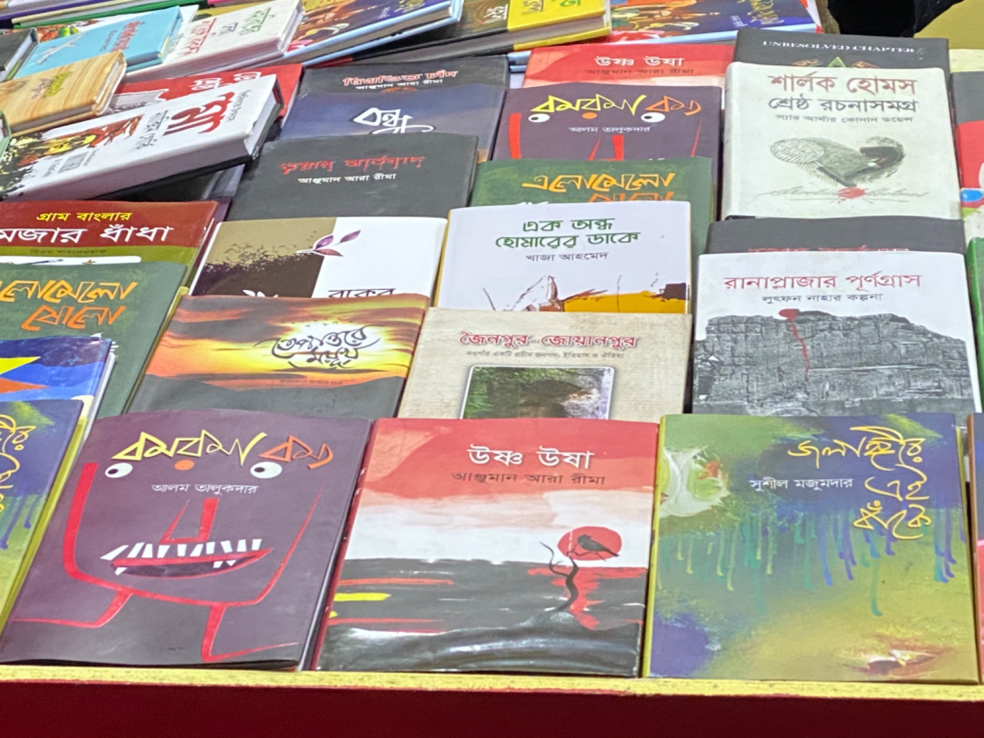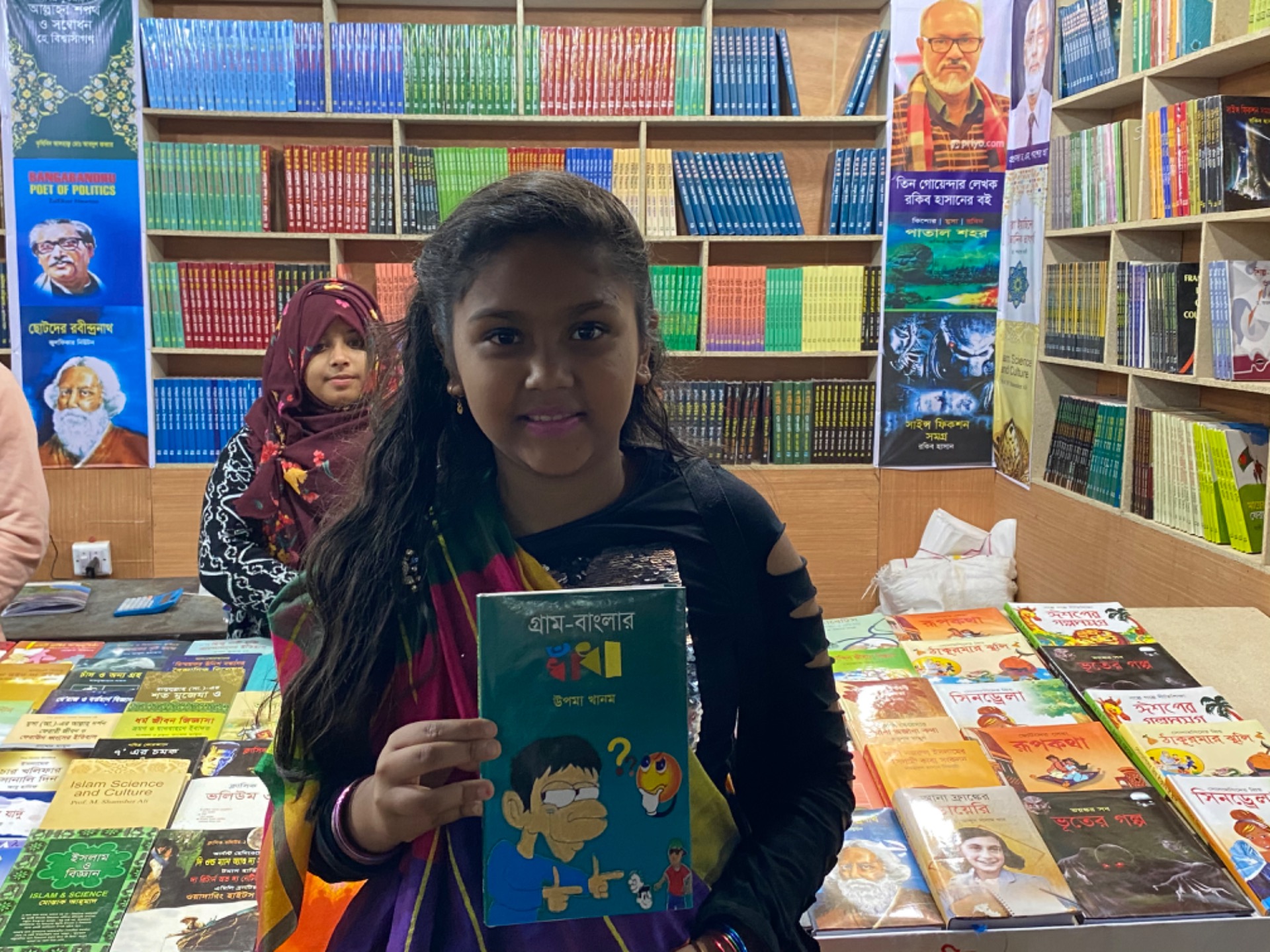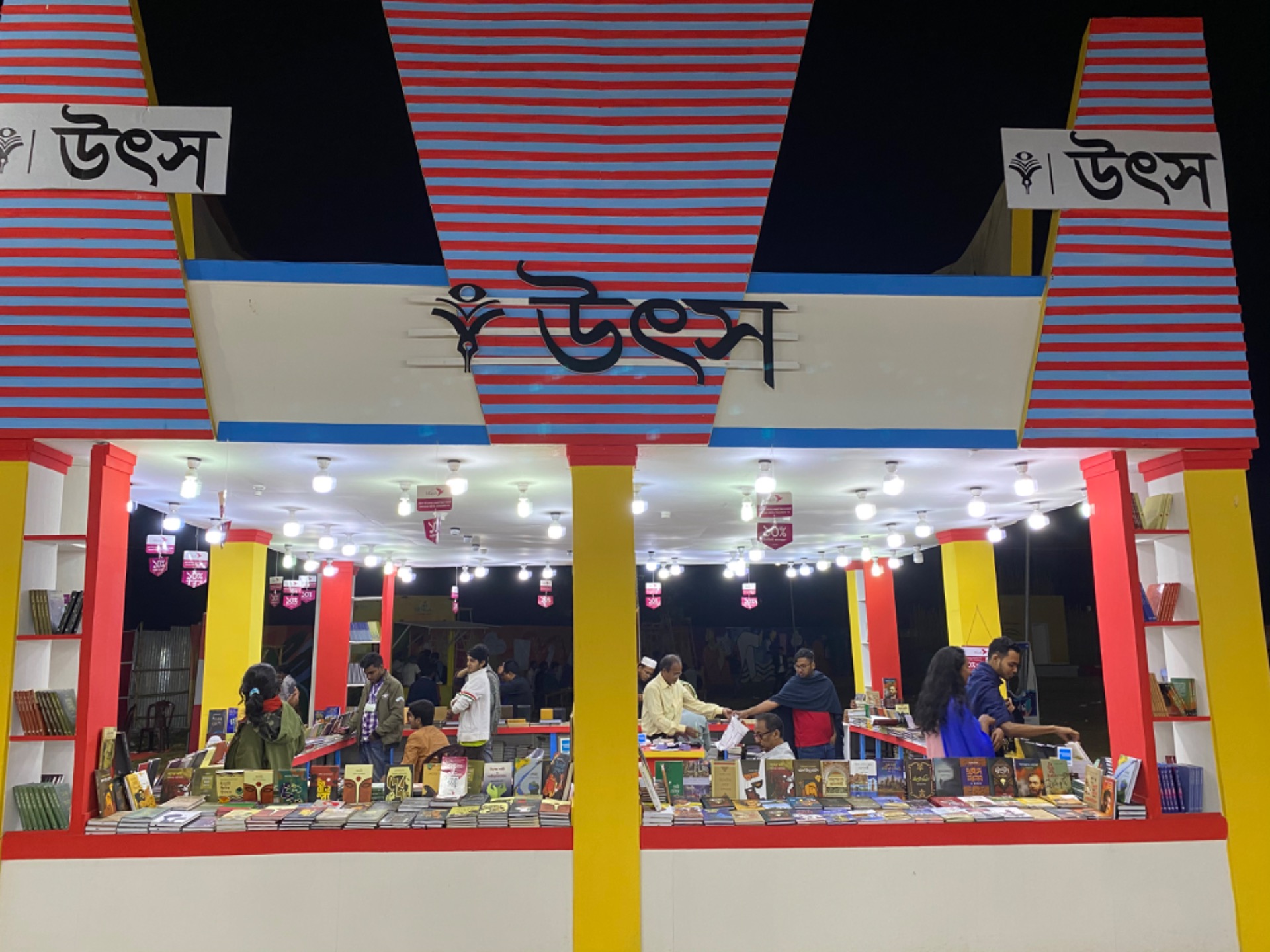 There was a very much popular writer of the country named Humayun Ahmed who died recently. Many stall owners were showing respect by making statues of him in their stalls.