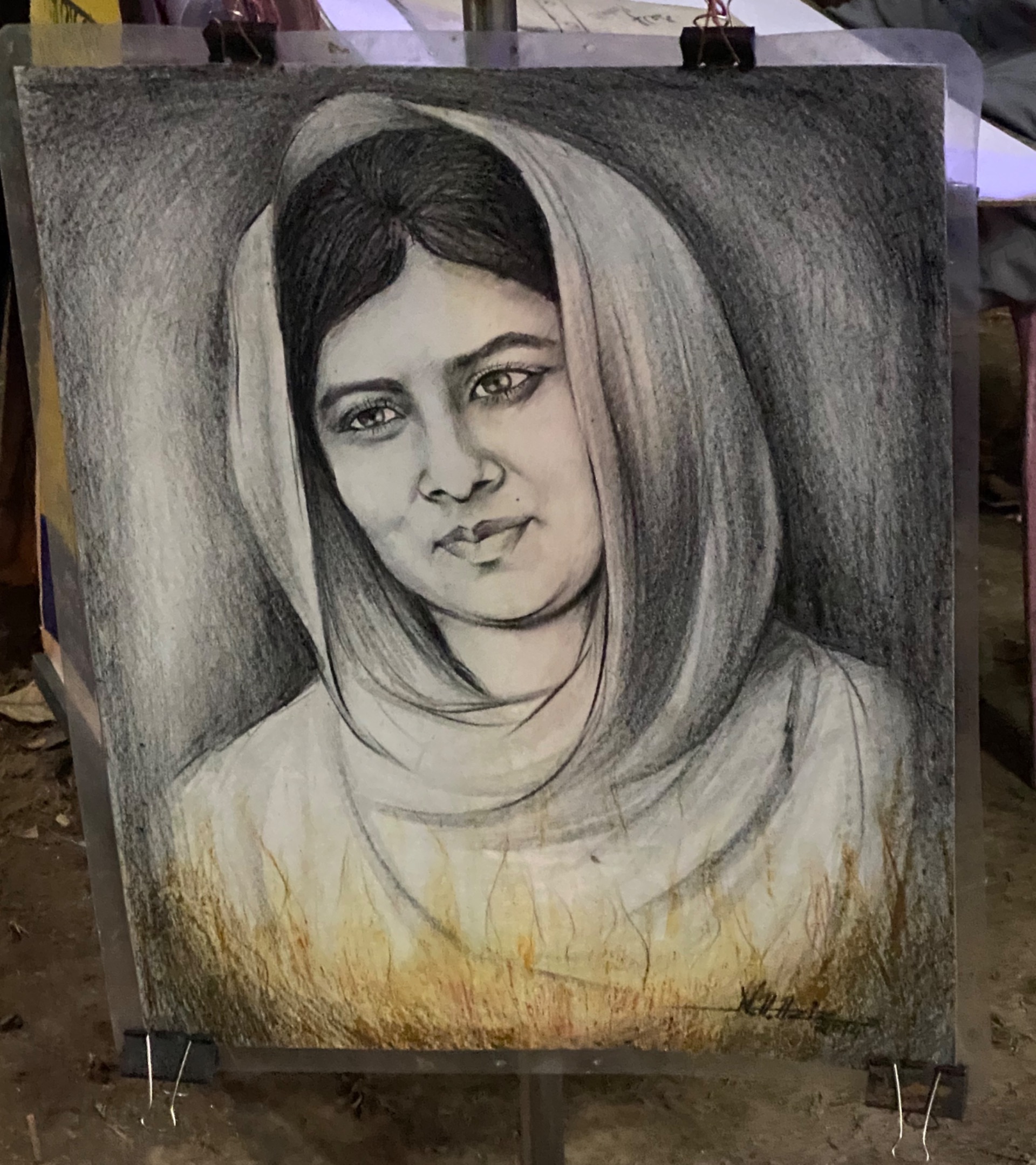 There was a painter in the fair who draws the sketch of people. Here is the picture.