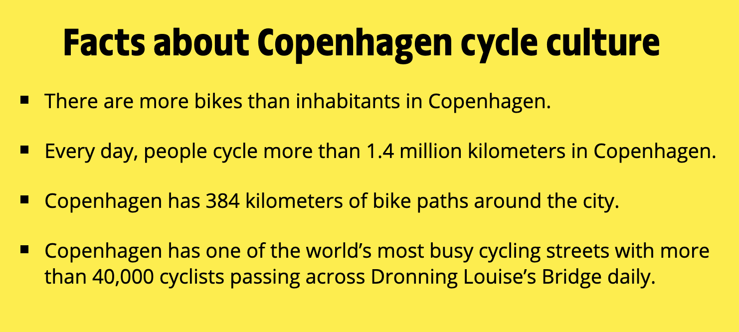 Now I have some interesting things I found while documenting for this post about cycling in Copenhagen so we could better understand why cycling is so popular here: