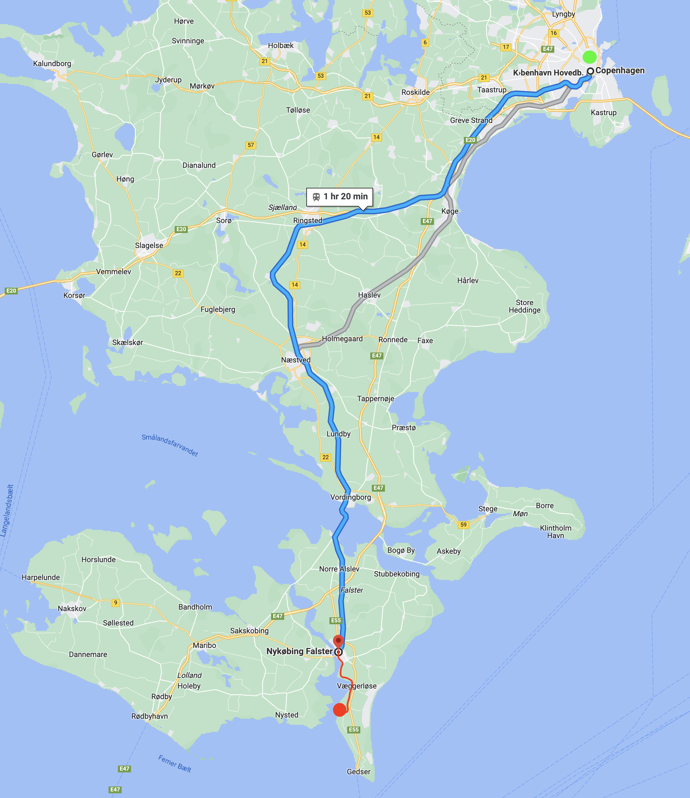 So now I was looking for an alternative which I eventually found in the form of a not so comfy but practical and budget friendly solution: splitting the trip into segments with some cycling in between. First segment was boarding a local train from Copenhagen to Nykobing Falster, second one was cycling back to Gedser, third crossing with the ferry to Rostock in Germany and finally the forth segment would be taking another local train from Rostock to Berlin. The advantage with the local trains is that they have more frequent departures and cost less plus it's easier to find a place for your bike without a reservation.