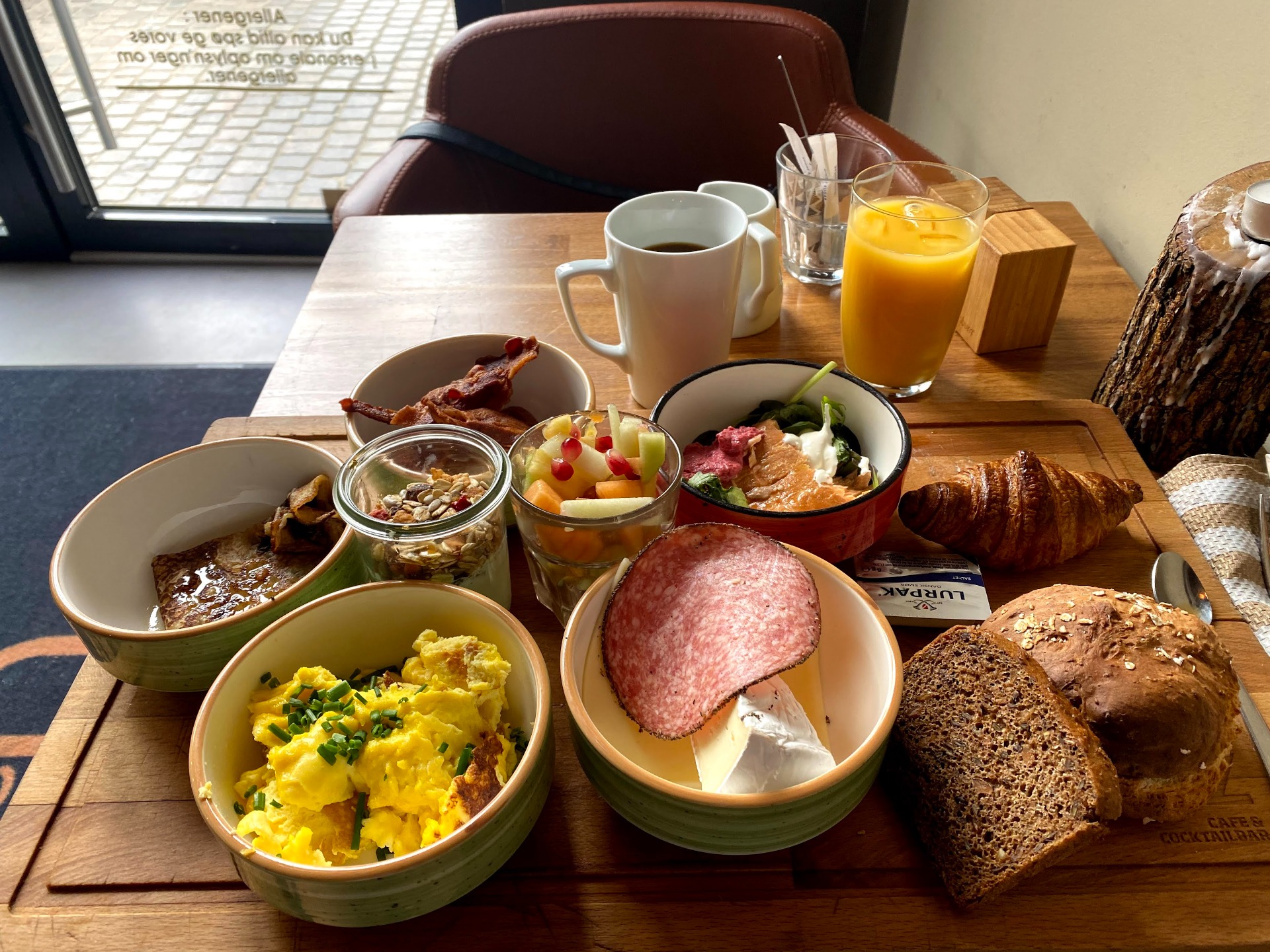 The camping in Gedser was quite small and quiet with no option for breakfast and I was quite low on caffeine that day so I decided to ride to Nykobing Falster which is a small city on our route just 17 km away. I got lucky again finding a nice coffee shop downtown called Ritz Cafe where I ordered the only thing I understood on the danish menu: brunch.