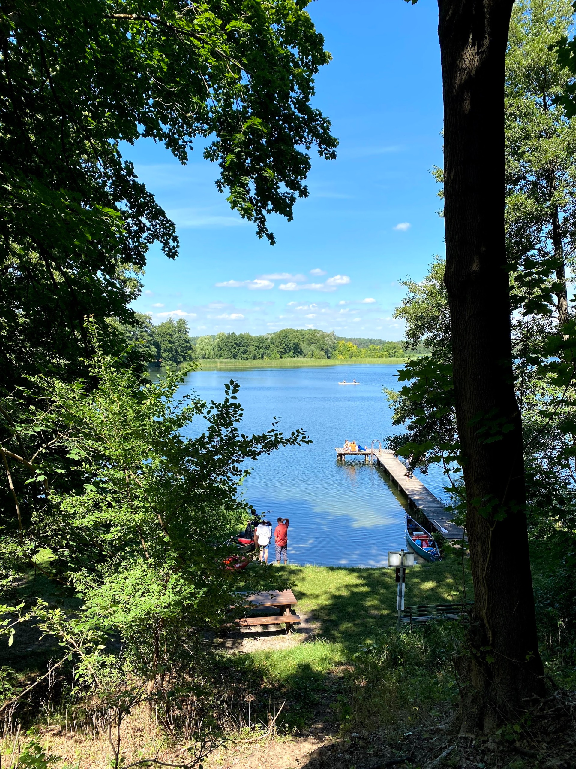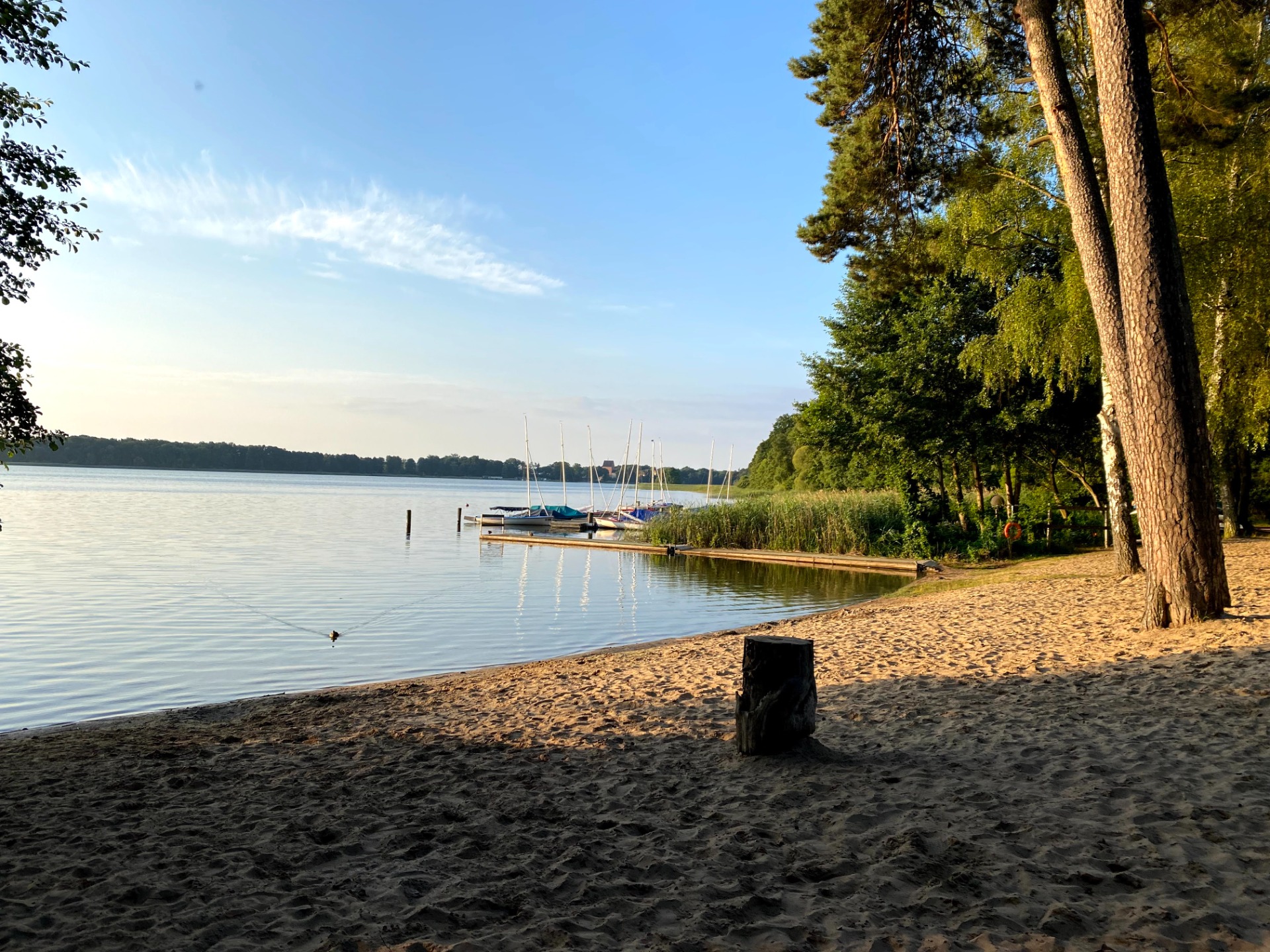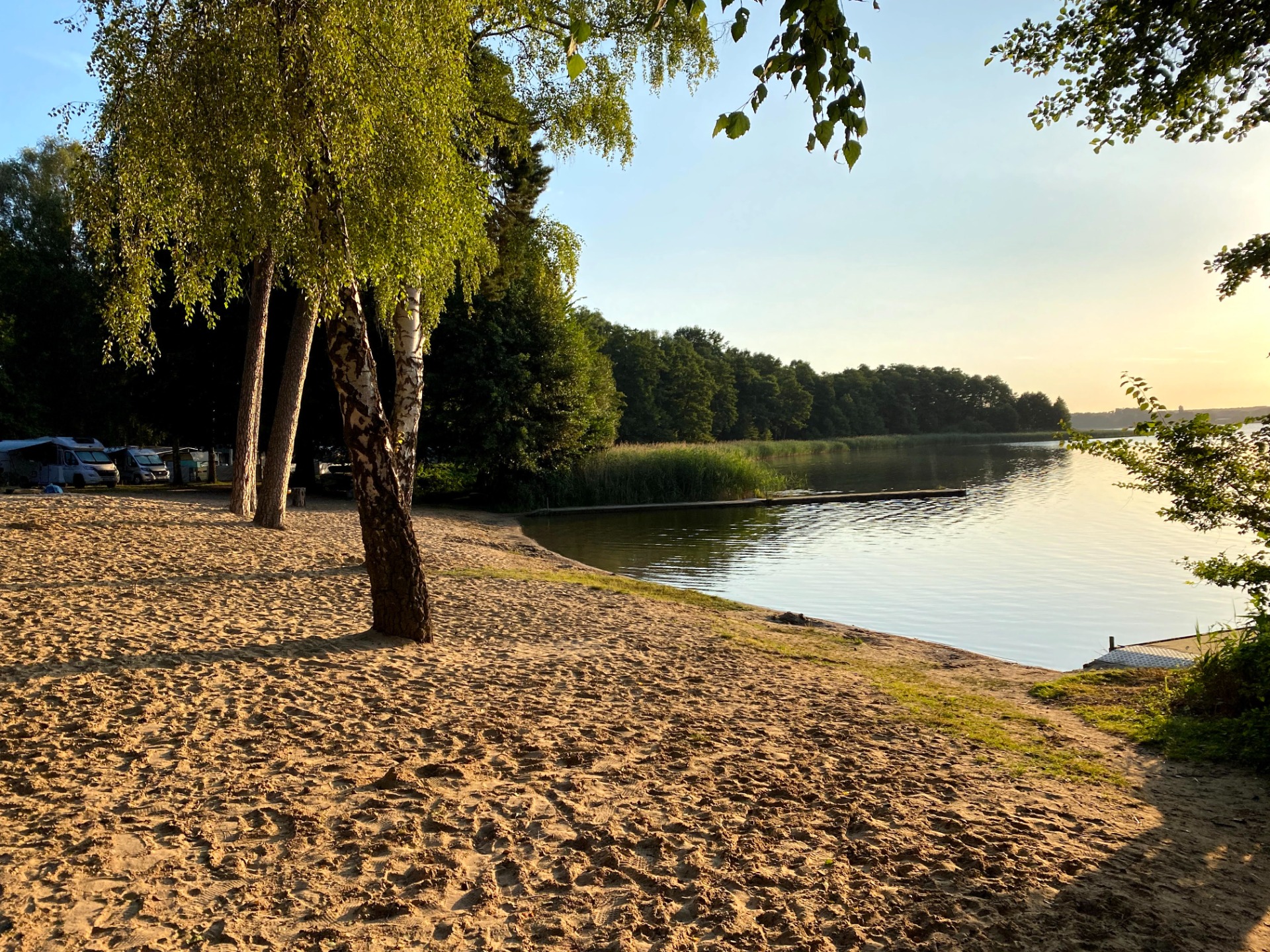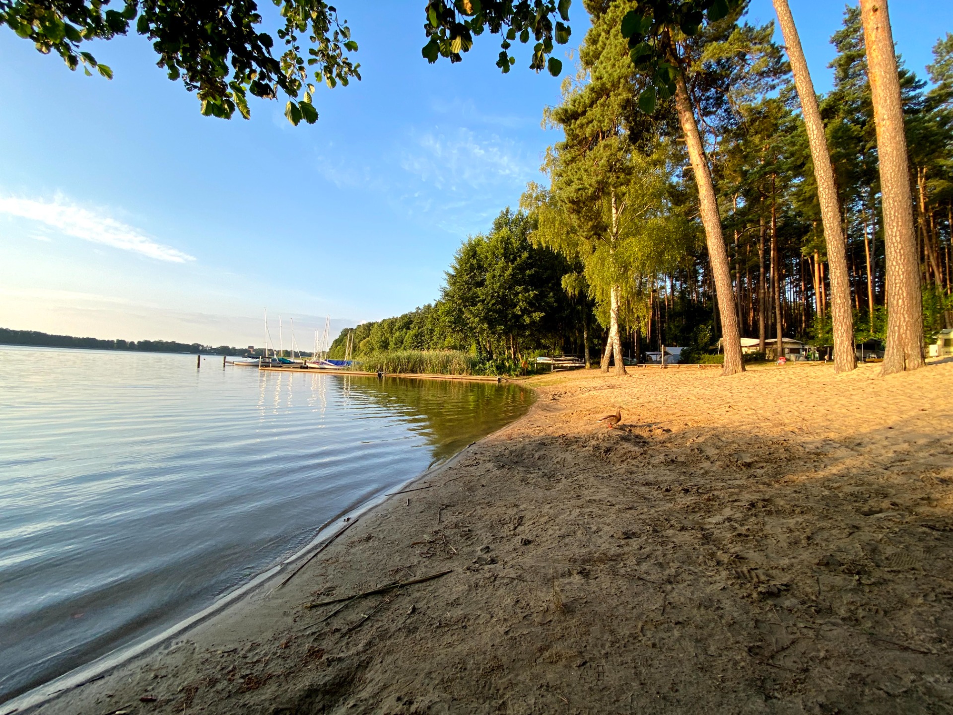 Normally I don't go swimming in the morning but today I'll make an exception, this perfect lake beach bathed in the sunlight is so inviting me to take my time and enjoy it. You can even swim naked if you want cause nudism is welcomed here, not mandatory but this is a FKK classified camping which in german language stands for Freikörperkultur, that translates to free body culture and consists in the connection of health aspects of being naked in light, air and sun with intentions to reform life and society that originated back in the German Empire. Hey why not but may be a bit later, the water is still cold in the morning...plus that duck is staring straight at me now.