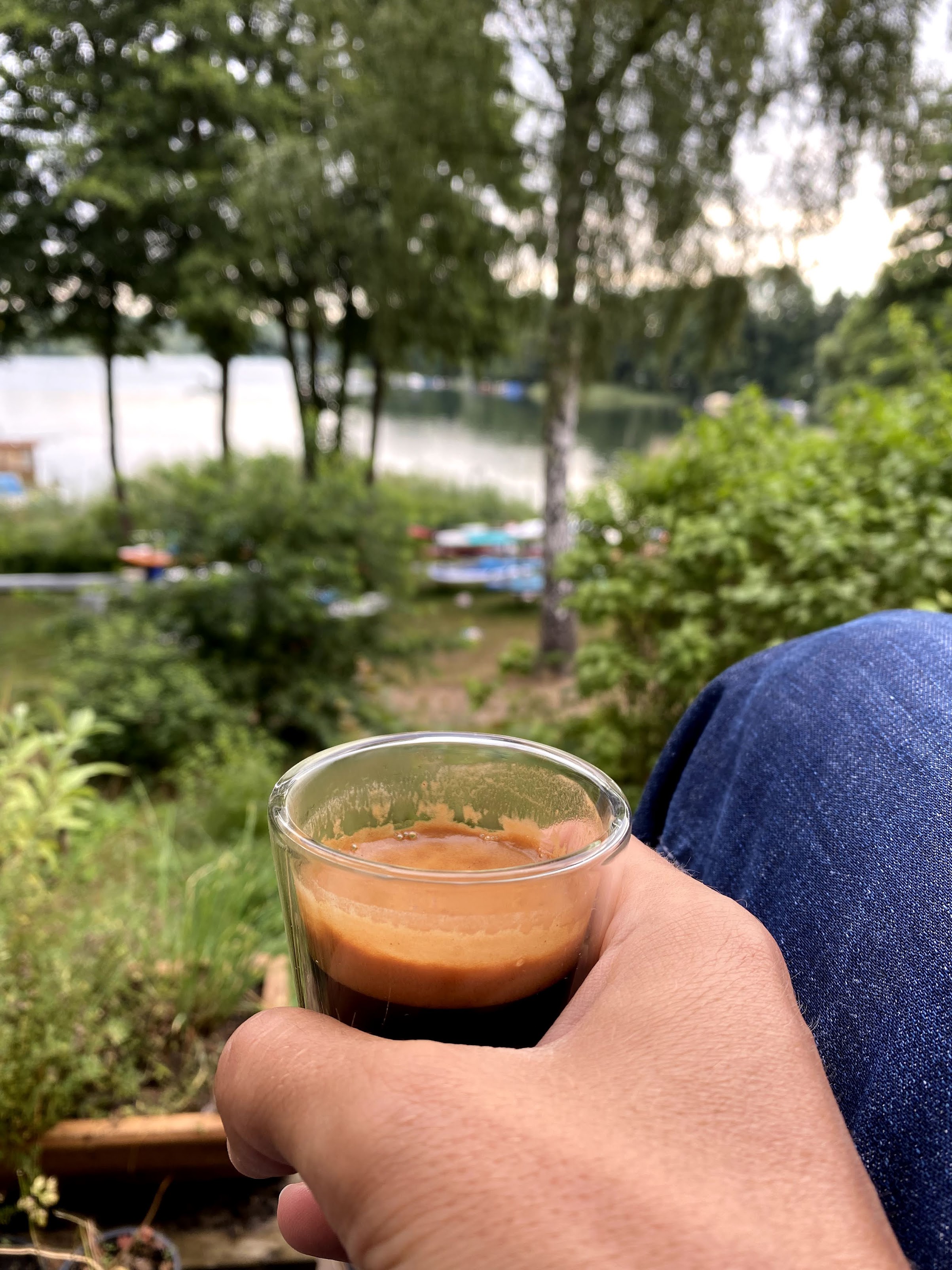 Well done Nature camping at Ellbogensee, can't ask for a better breakfast in a camping. Actually the whole set up was more like a coffee shop, the porch view being a bonus for the early birds.