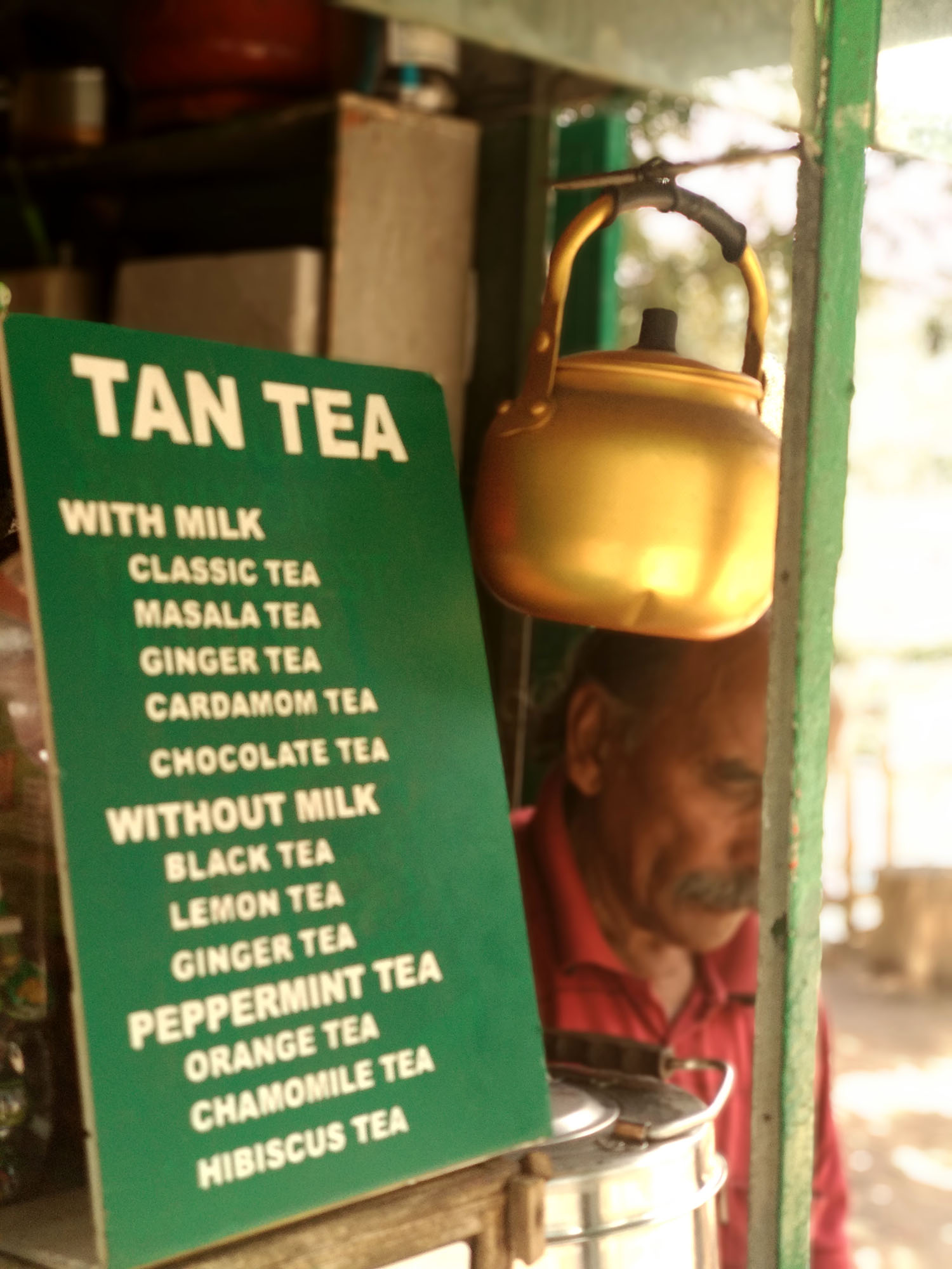 They have a small list of tea options available with and without milk. Close to the tea stall is their office and they have tea plantations in the same area. Visiting there everyday, I have now tried all of their tea options without milk, the ones which were available.