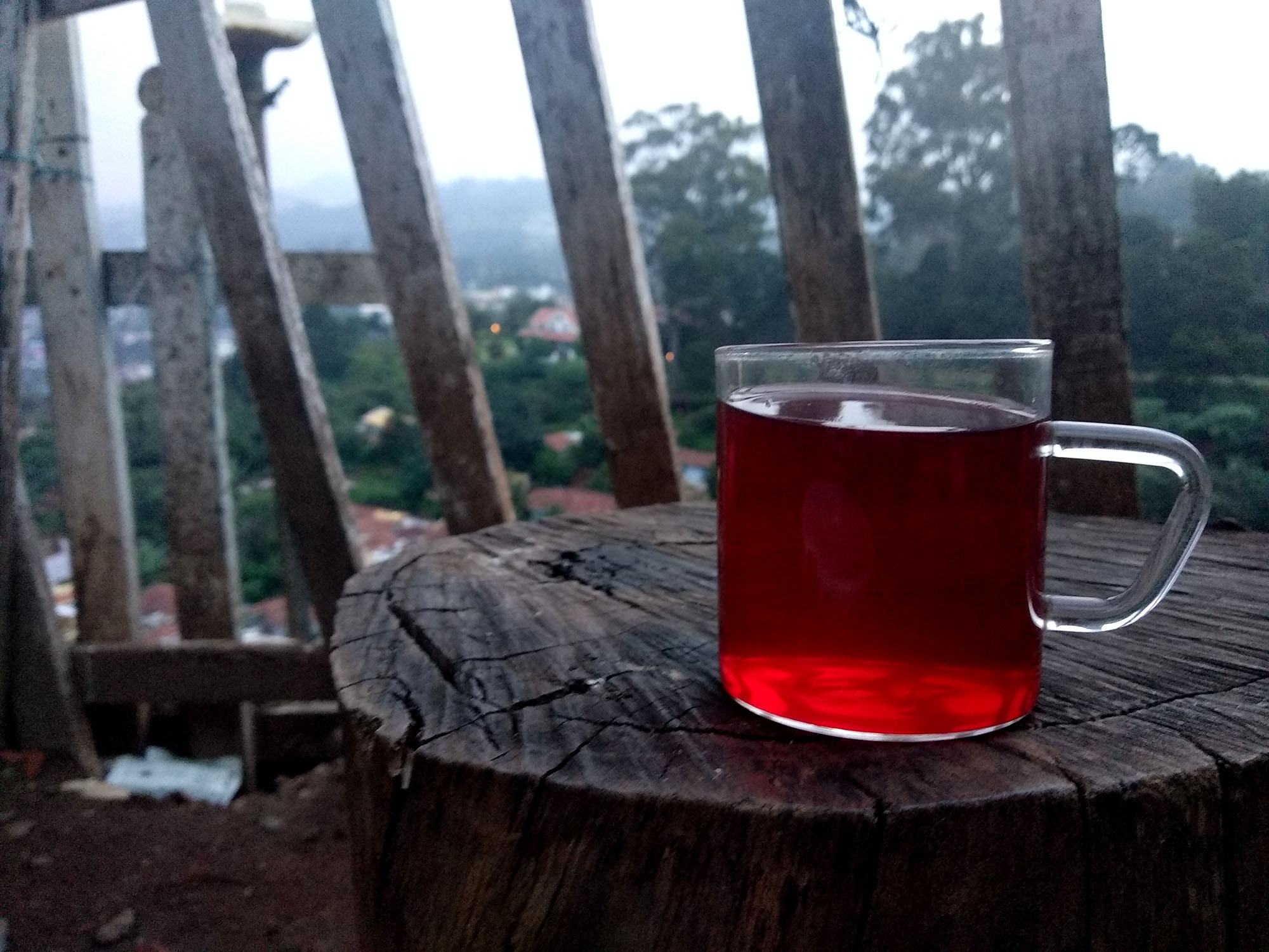 I don't think the picture does any justice to the real colour of the cloud, but it was one of the beautiful sights I have ever seen, such was the colour. One of the best things one can do in TANTEA stall is to sit on one of those wooden cuttings, which is used as chairs and enjoy the view.