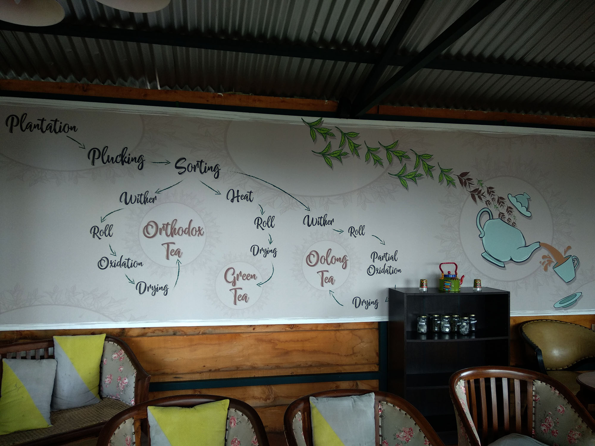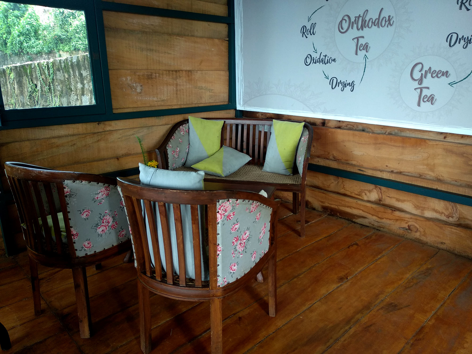 Otherwise a favourite smoke arena of the local students and youngsters, TANTEA stall has these chairs that face the valley which is a tea plantation and on the other side it is the road that goes down to another part of the town.