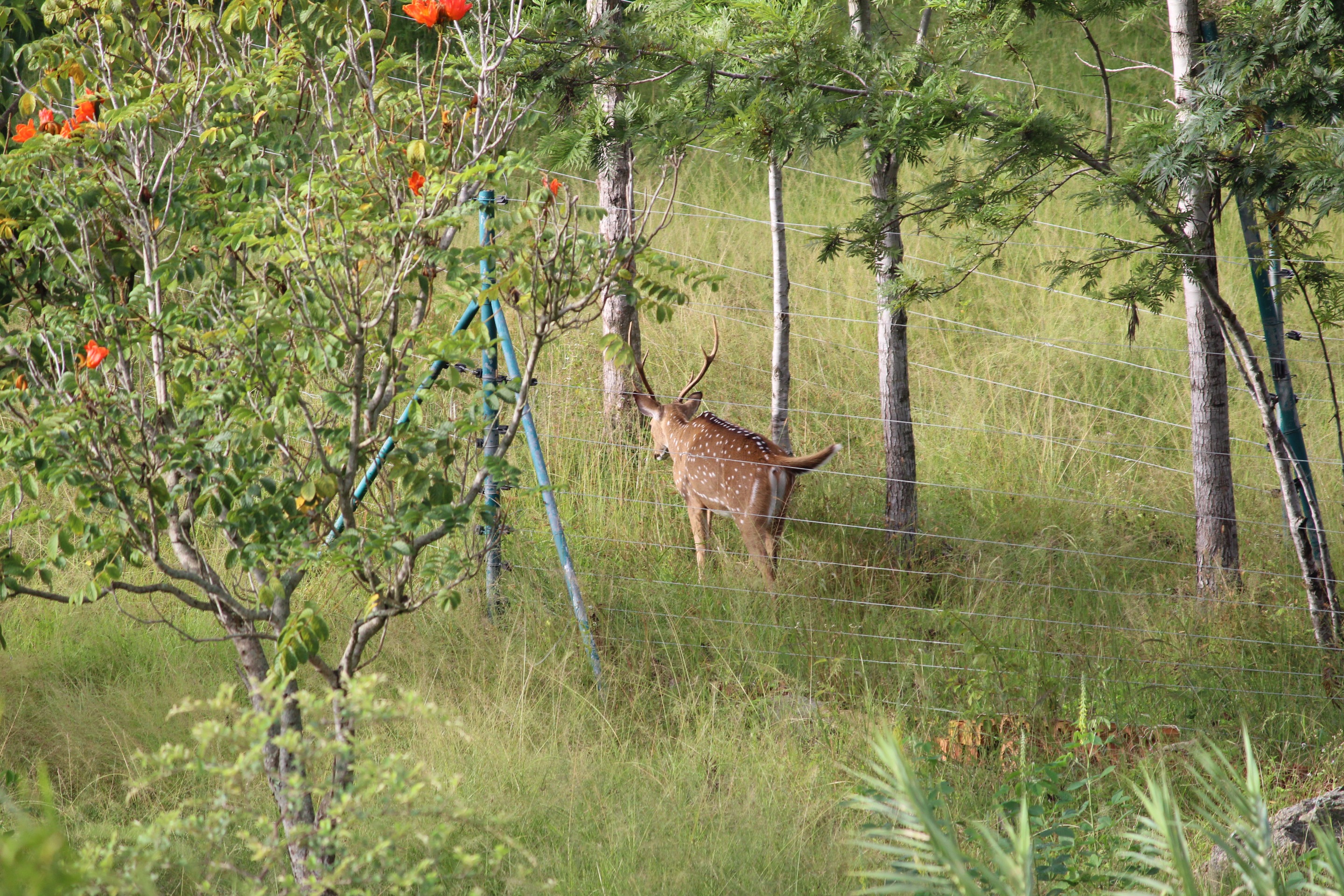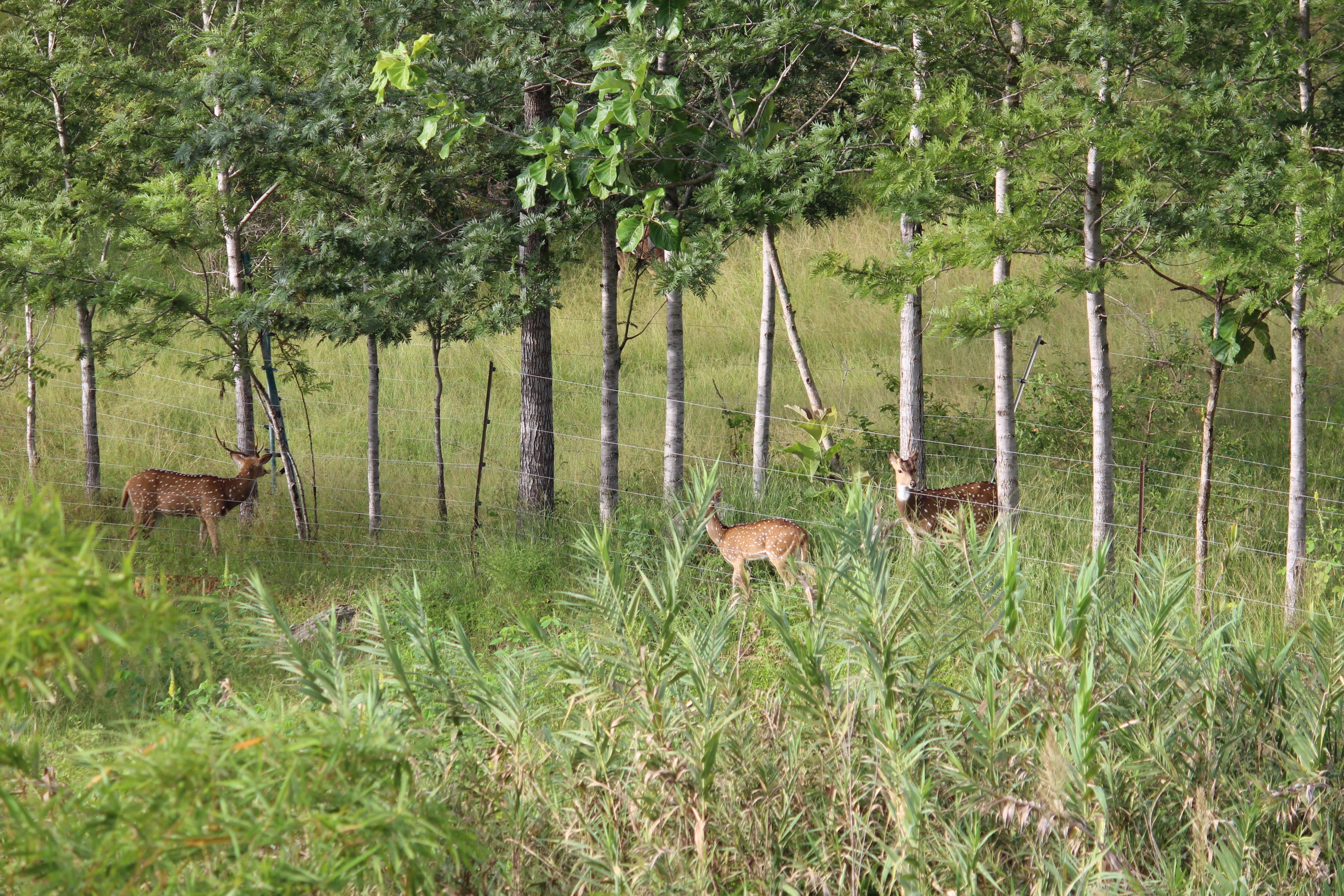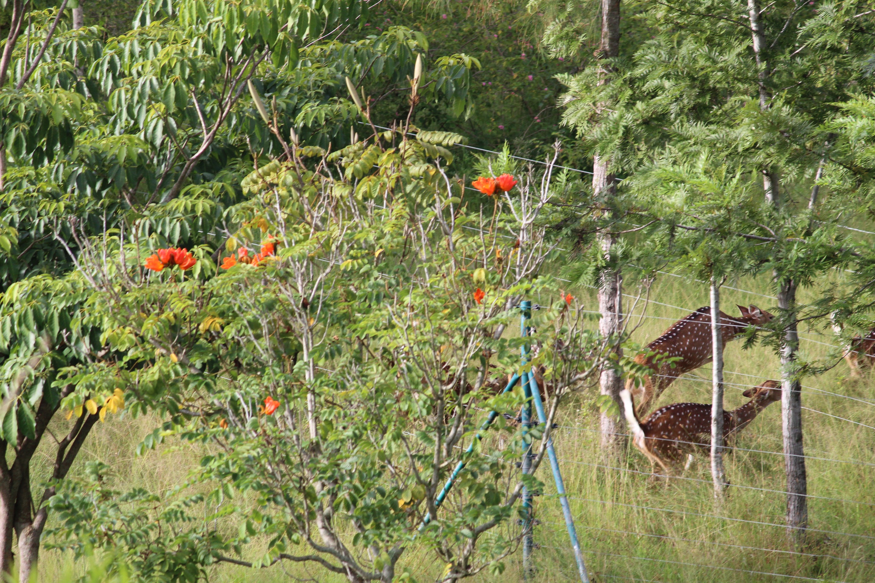 Morning time the deers grazing near the resort awesome view.