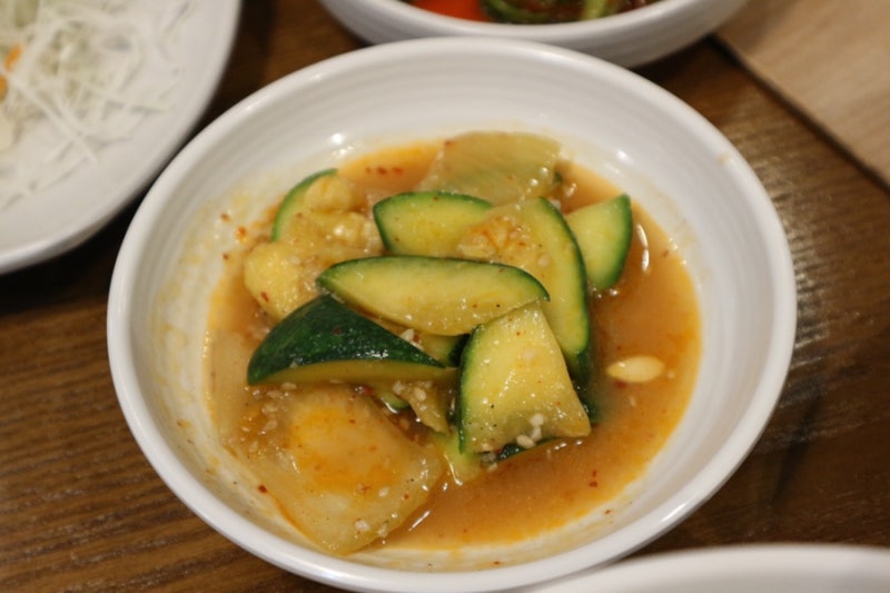 Zucchini side dish and yeolmu kimchi came out
