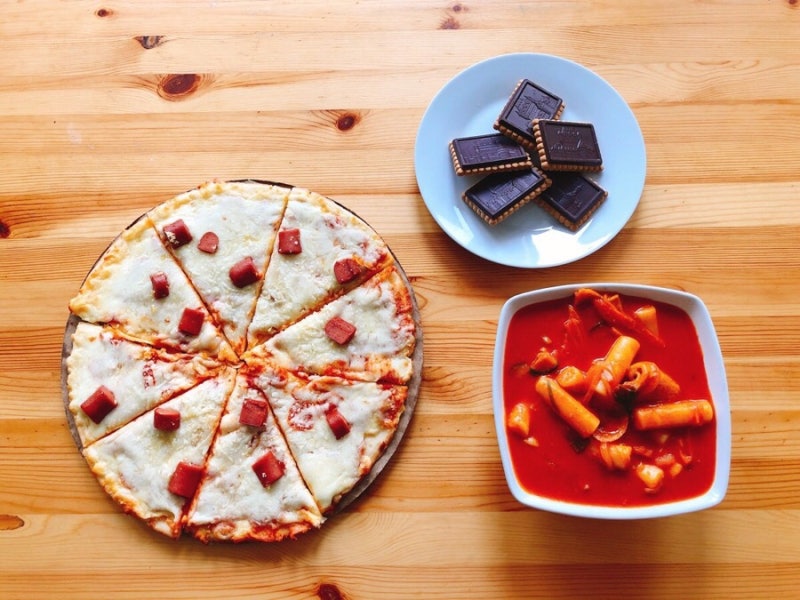 Since it was a Japanese friend's birthday,several friendsdecided to prepare their own food.I have pizza, tteokbokki and refreshments