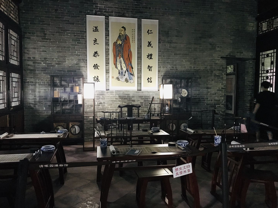 This Inkstone Private School was the private school used by the children of the Long family to study at that time, and was built during the Daoguang period. The tables and chairs, pen, ink, paper and inkstone are all historical relics. It rained heavily on the day we went, there was not enough light, and there were no light pipes inside, just the faint light provided by the two lanterns! Is this to preserve its ancient appearance?