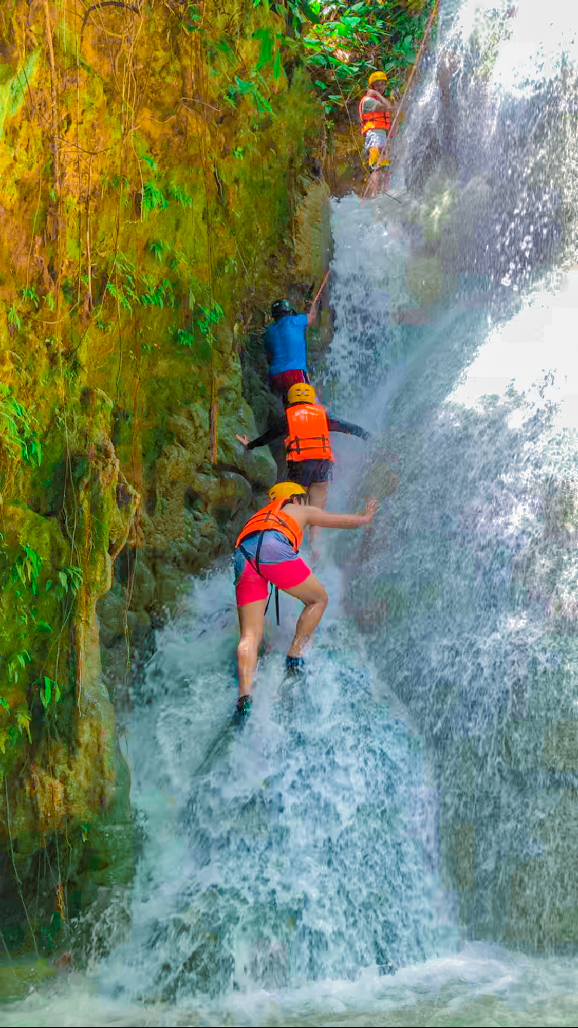 This is Level 2. We need to climb up that falls, in the background, without any ropes. Fortunately, they created hand and foot slots for an easy climb. Also, we felt very safe because the guides were very attentive and protective along the way. So, you really do not have to worry about anything if you carefully listen to the guides.Level 3