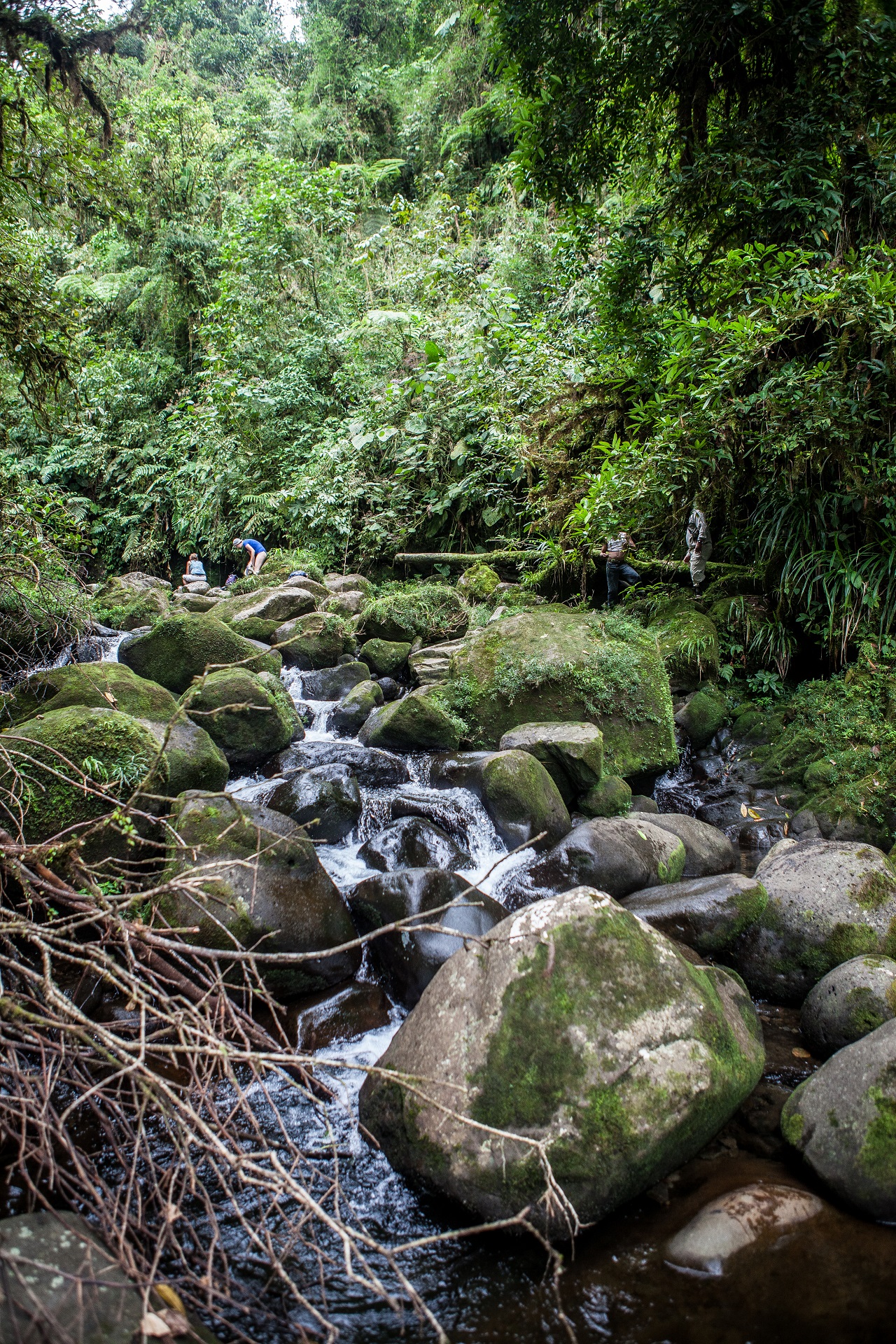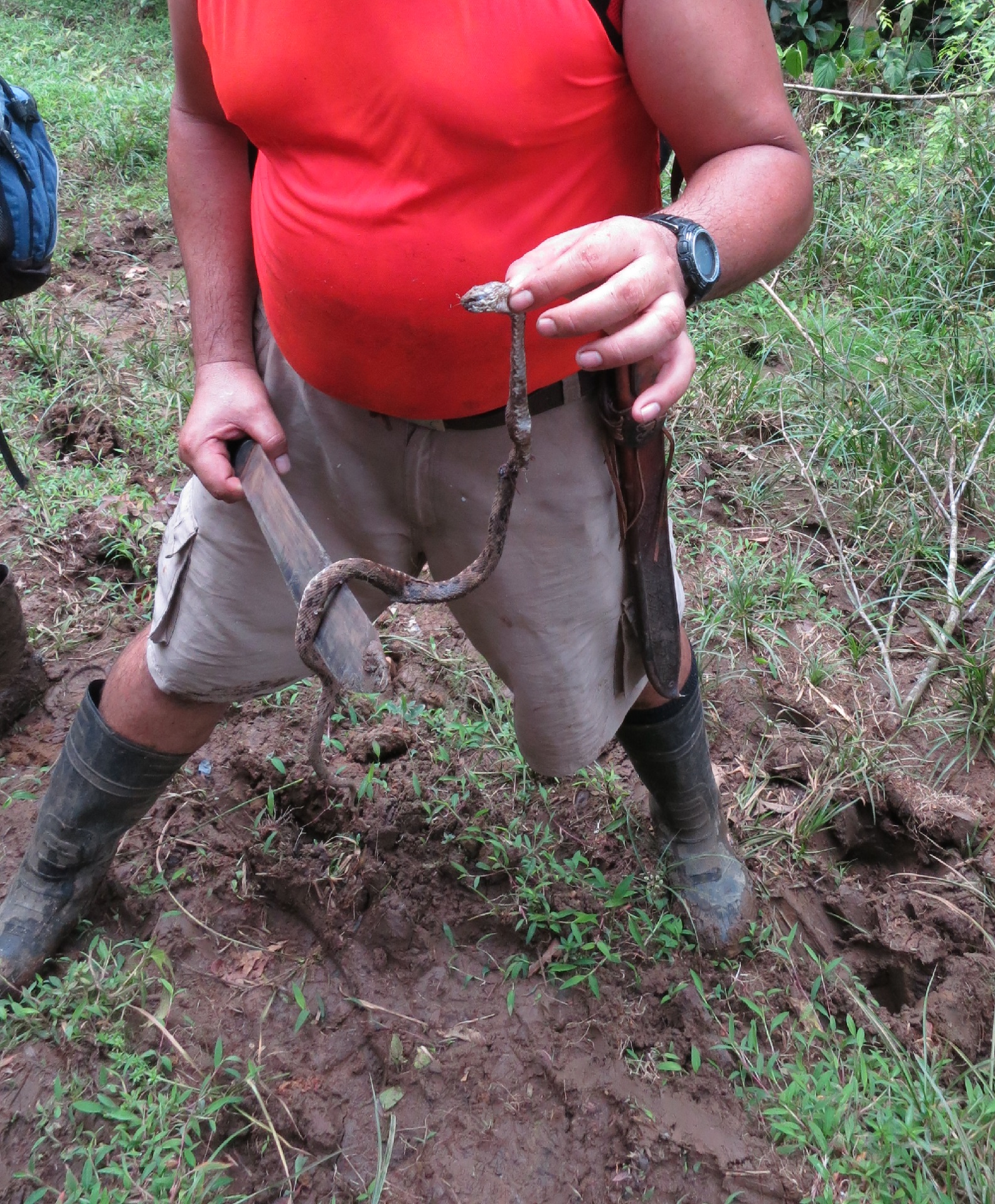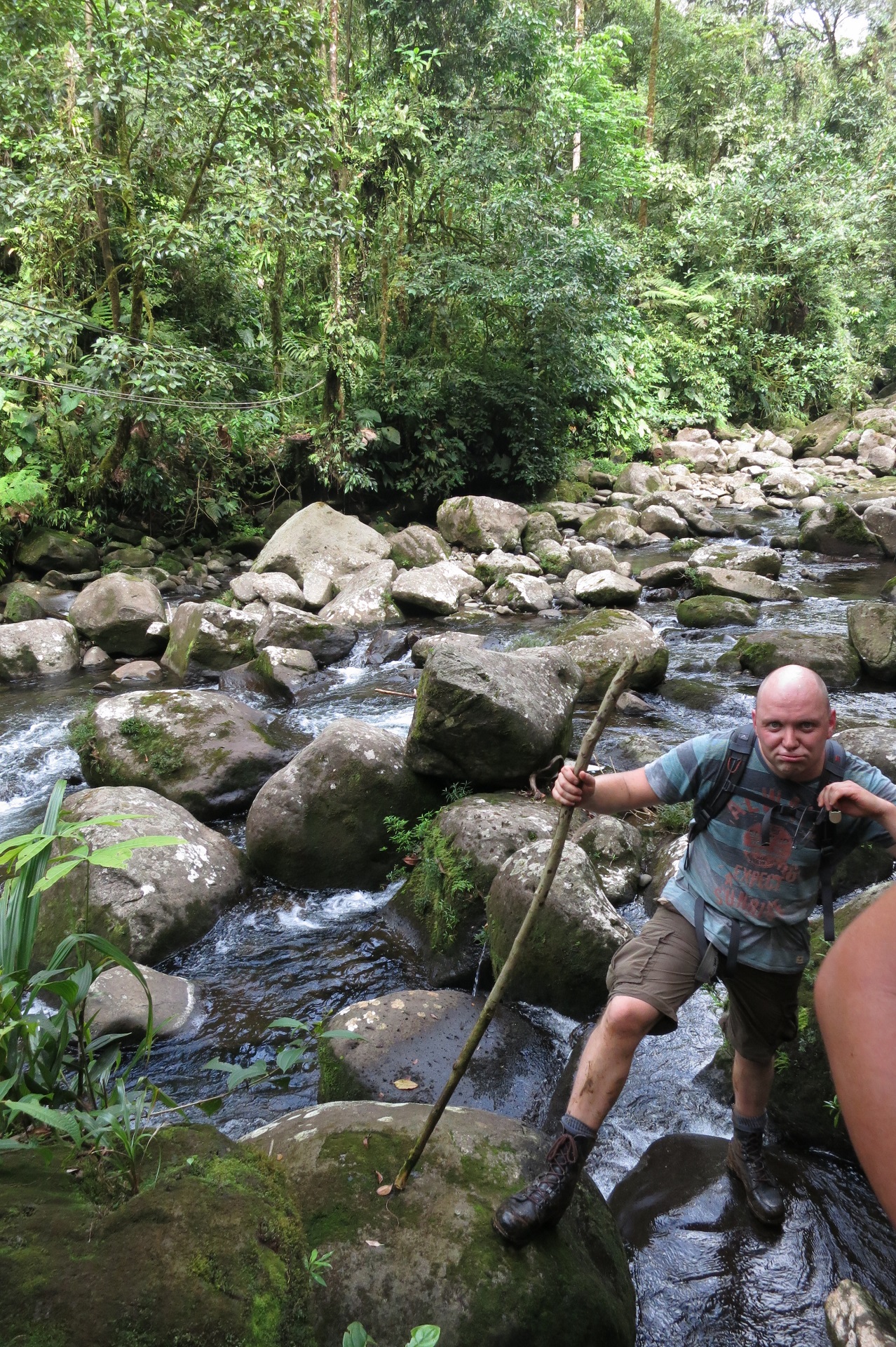 The location was pretty good because it was close by the location where we started a three day trip trough the jungle! La Dante Salvaje! We where picked up at the hostel by a four wheel drive and drove for 2 hours up the mountain to the the starting point of our four hour hike up into the jungle, the warm and high humidity of the jungle was pretty heavy! In the beginning we came across a view little farms and there I encounter my first wild snake ever, a Fer-de-lance! to bad it was dead, probably killed by a farmer to protect his livestock. After some river crossings we entered the dense jungle of Costa Rica and the path way became more and more overgrown. Good that the guide has a machete to cut his way trough the dense bush! 2 and a half hour in to the hike there was the first open spot in the jungle, it was a little elevated and the guide told us that this was the helicopter emergency landing site for us if we needed to be rescued! Then i thought we would be close to the camp but that stil was one hour and a half away! Then I realized we had to be even more careful and not get bitten by a snake because we might not survive the trip to that landing zone!