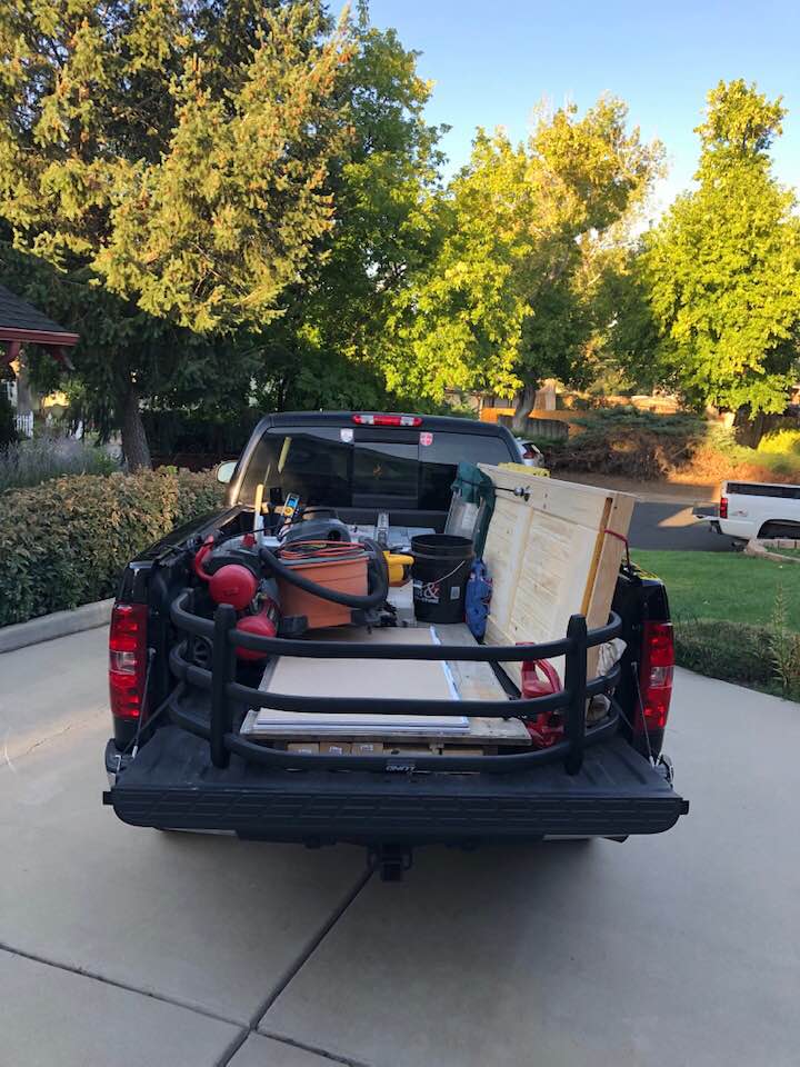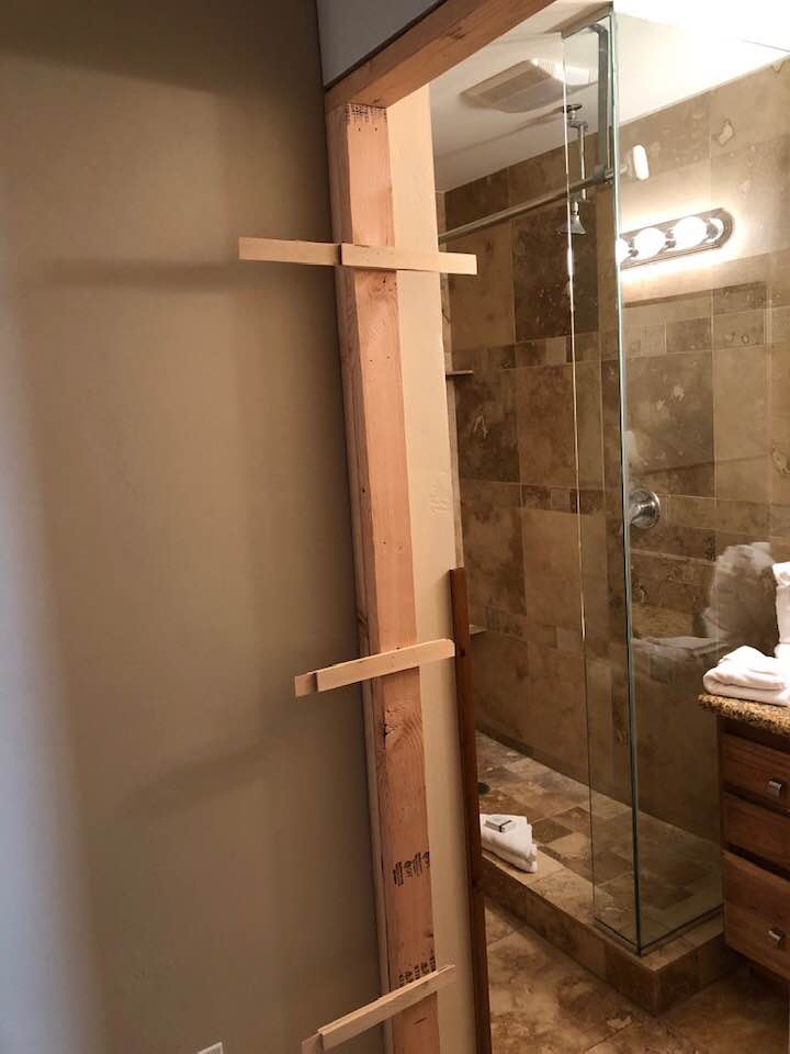 Because there wasn't an existing opening in the condo's bathroom, I built a custom jamb and hung a Home Depot door on it; all that work was done here in my home shop. Once it was put together, I loaded it up along with my tools and we set out for a pretty drive through the mountains.