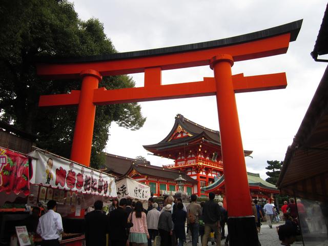 The main structure of this Shinto shrine predates the capital's move to Kyoto in 794. The torii gates were donated at a much later stage. The gate at the entrance was donated by the general and leader Toyotomi Hideyoshi in 1589. Behind the main structure starts a hiking trail covered by many smaller torii gates. Each of these gates were donated by significant individuals and companies over time. You can even find the name of the donator on each gate. The amount of donation ranges from 400k Yen to a million Yen depending on the size. Source