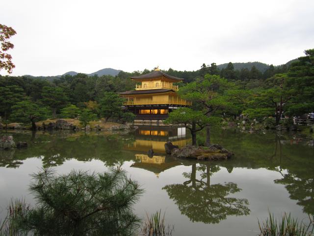 Yoshimitsu had a larger retirement complex around the pond, but they were all burnt down in various wars throughout history. The present structure you see in this picture was renovated in 1955.