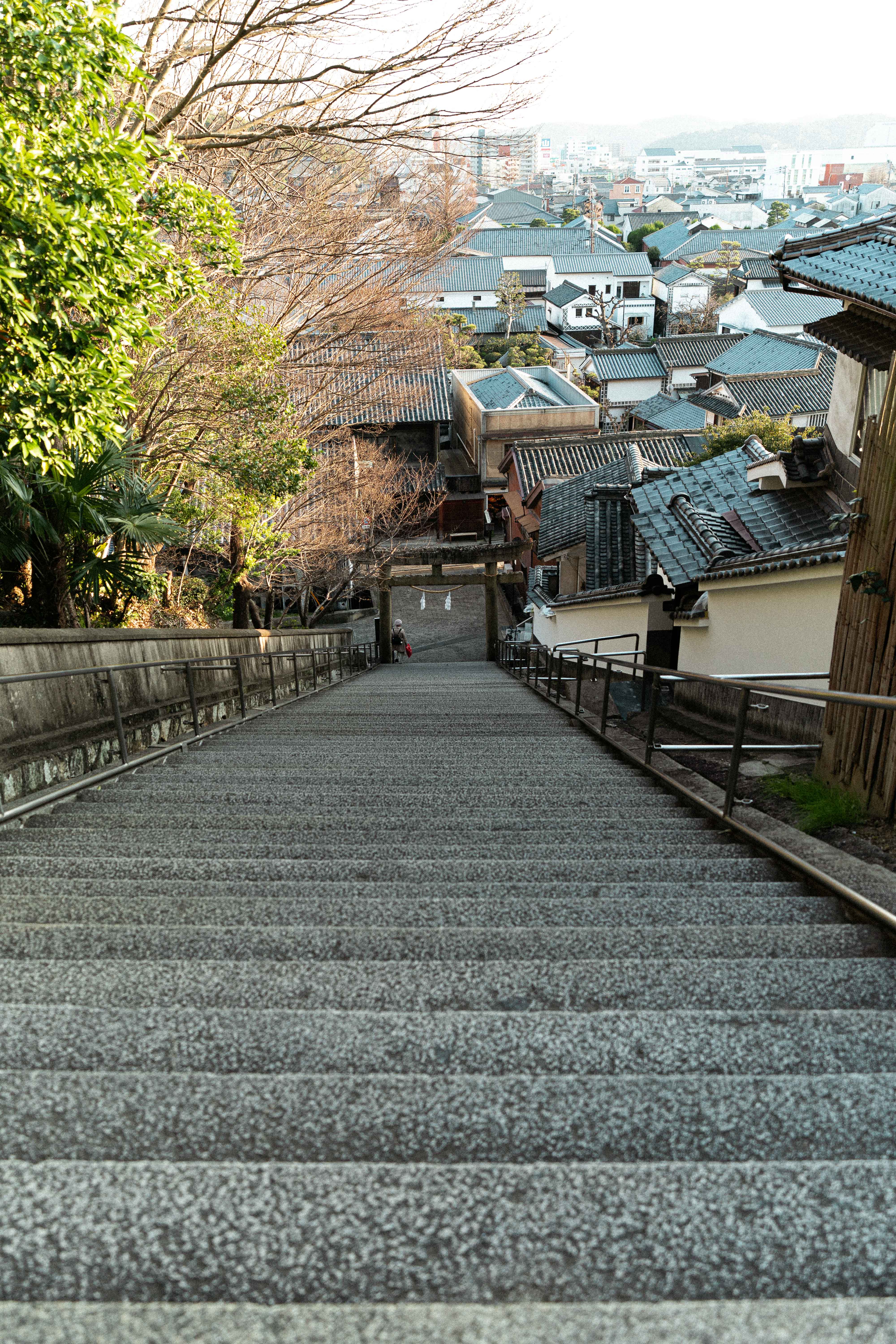 As we wandered aimlessly in the streets, a flight of stairs in the distance caught our attention, promising some interesting views above the town along the way. We walked past a temple or two and a cemetery before deciding to follow a pathway on our right, which eventually led to a wooden gate on top of another flight of stairs. Crossing the gate, we discovered the shrine of Achi.