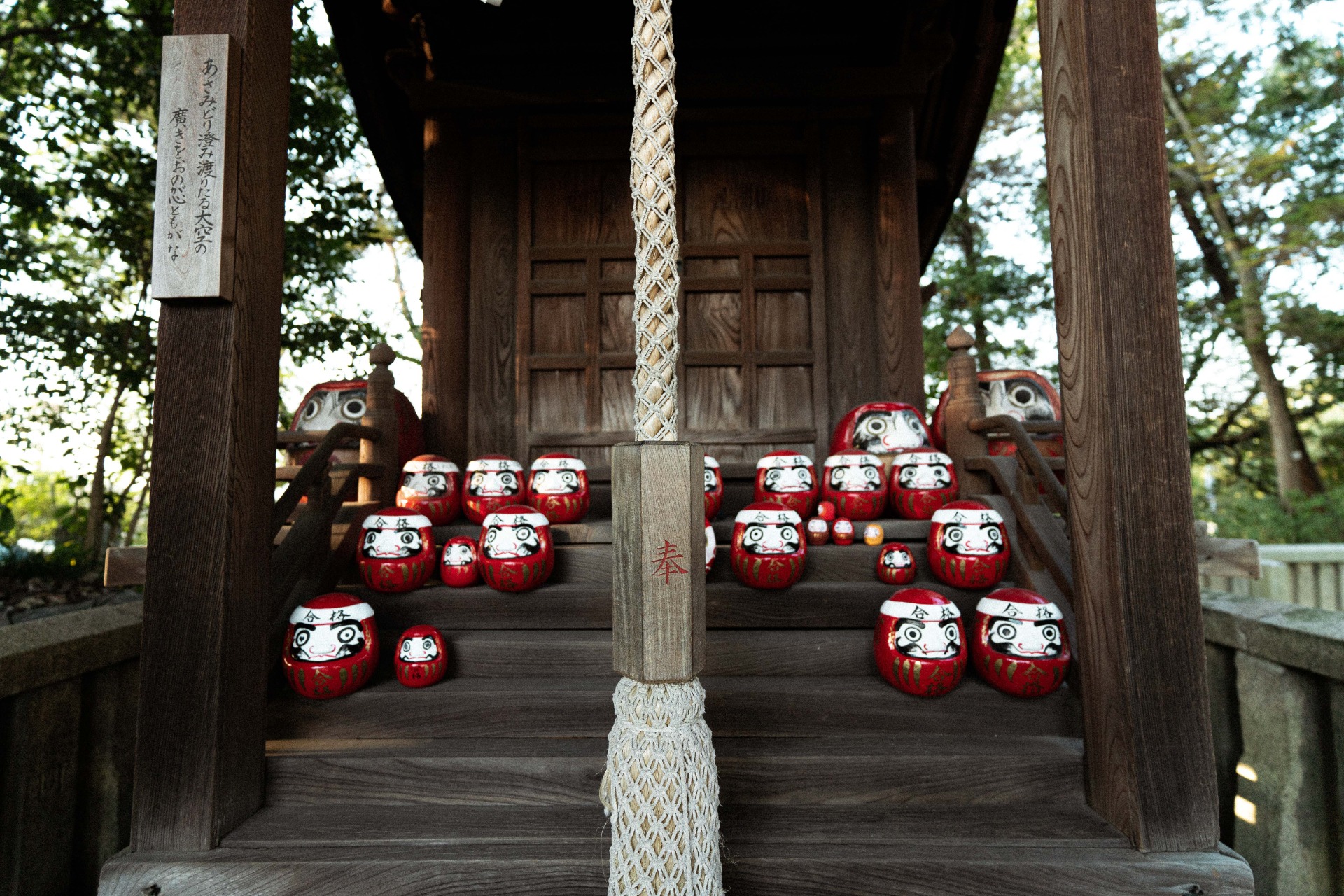 There was nothing impressive about this shrine, save perhaps for the unusual number of daruma dolls in one of its buildings. It was a local, tranquil shrine on top of the Tsurugata-yama hill. Yet, we lingered longer than expected. Maybe it was the beauty of the fading lights of the early evening that made us stay or maybe the curiosity to stop and read the wishes written on wooden plaques hanging all over the shrine, most of which had something to do with succeeding at exams or making it to university.
