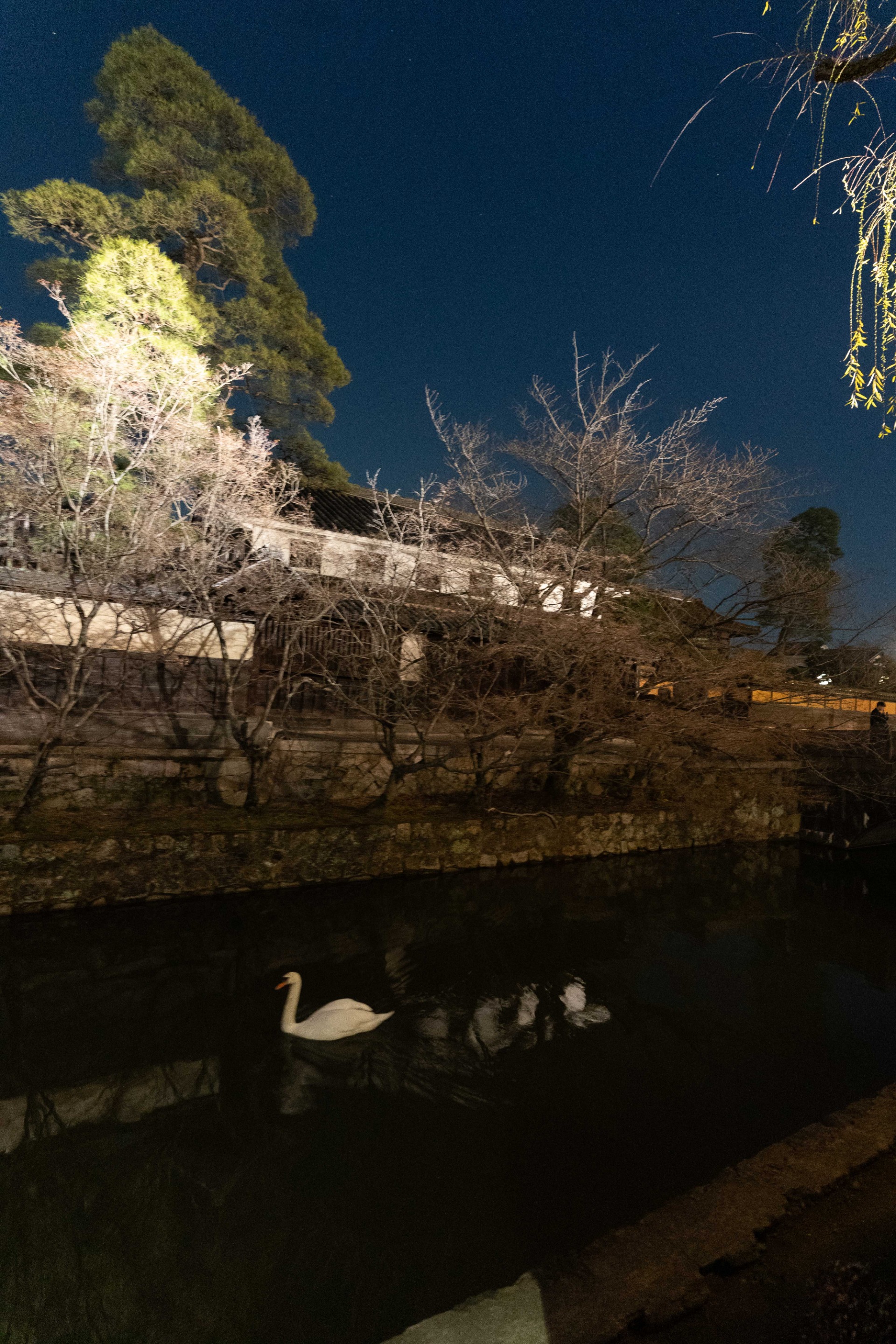 The streets were dark and empty when we got out. We walked towards the Kurashiki canal once again, enjoying the beautifully lit up storage houses along the way. Even at night time, we weren’t the only tourists taking a stroll along the canal but the mood was far quieter than before. The boats were docked and only a handful of white swans were cruising the canal, sharing the space with some kai carps. Rickshaw drivers were nowhere to be seen. Cafés and shops had shut their front doors. As we sat there in silence, we noticed for the first time that there were no electric wires hanging above our heads just like in every other Japanese city. There was definitely something special about Kurashiki.