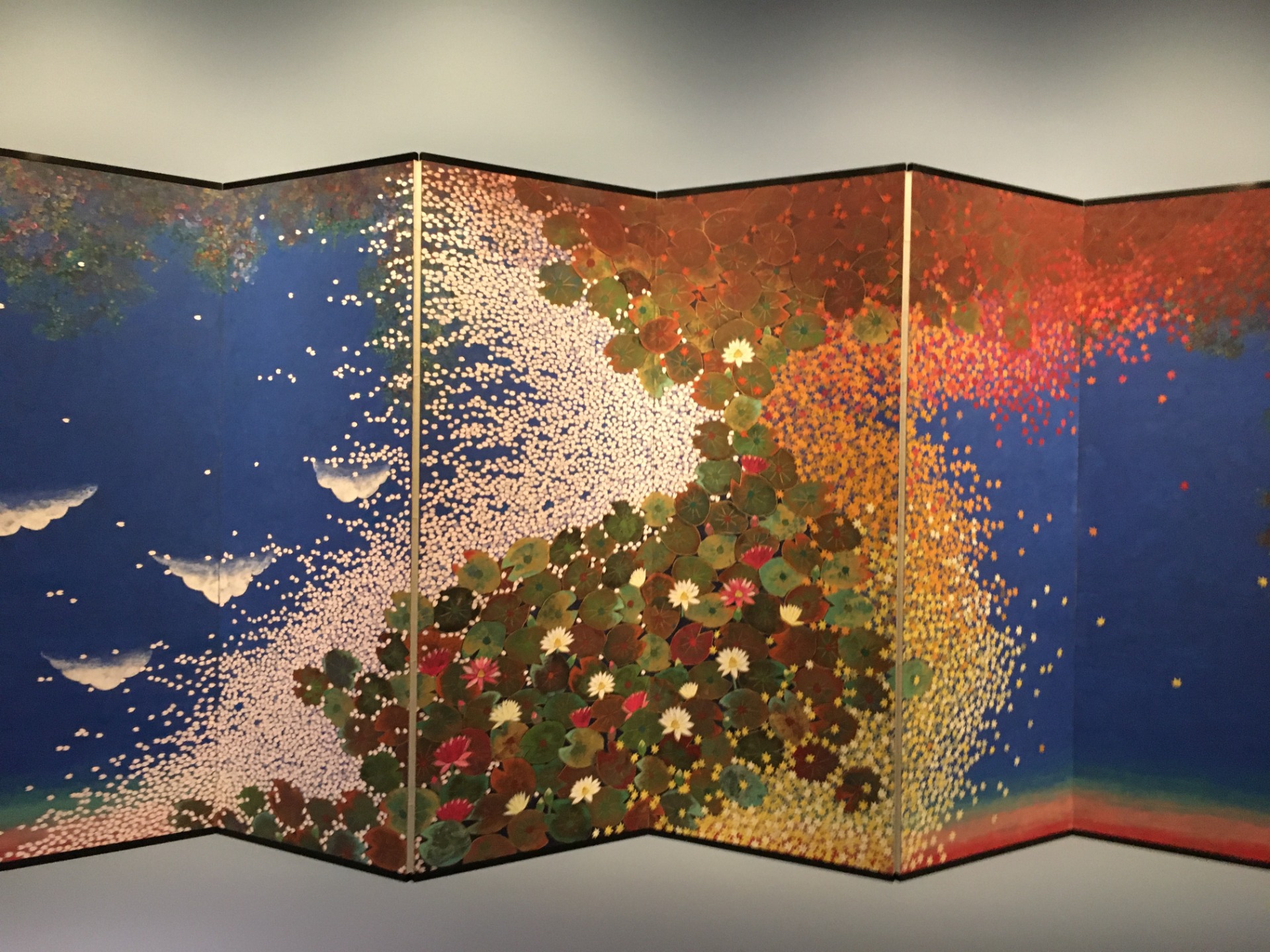 We eventually left Monet's property after a compulsory, if short-lived, crossing through the inevitable souvenir shop. An impressionist museum was located about five minutes away, on the other side of the village. As it turned out, it was a rather small exhibition hall, considering that most impressionist paintings had been sent over the years to most major museums around the globe. It was an interesting visit nonetheless and several artworks of Japanese-born artist Hiramatsu Reiji particularly caught our eyes. Inspired by Monet, Hiramatsu had reinterpreted the water lilies on a set of traditional Japanese screens. Thanks to him, the love affair between Monet and Japanese art went full circle in a beautiful way.
