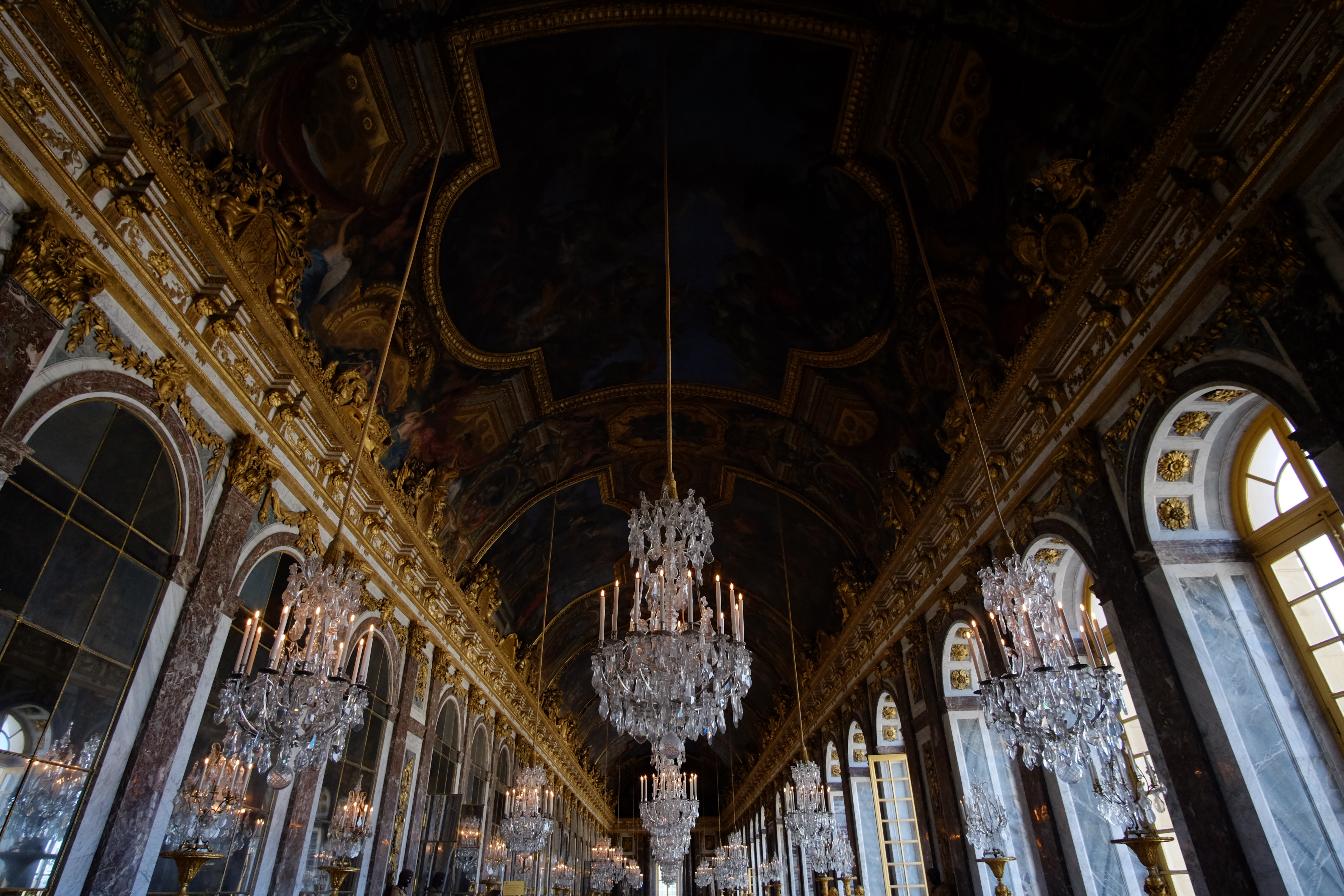 Arguably, the real crux of the visit was the Hall of Mirrors though. If perfection was a place, the “Galerie des Glaces” of Versailles would be one strong contender. Standing at the entrance of this 73m long room of pure flamboyance was just blissful, no matter how many tourists were swarming in. The level of details of the ceiling paintings by Le Brun would alone have been eye-catching but on top of that were the 357 mirrors, dozens of glass chandeliers and extravagant pilasters topped with gilded bronze. Minimalist design sure was a foreign concept back in the 17th century.