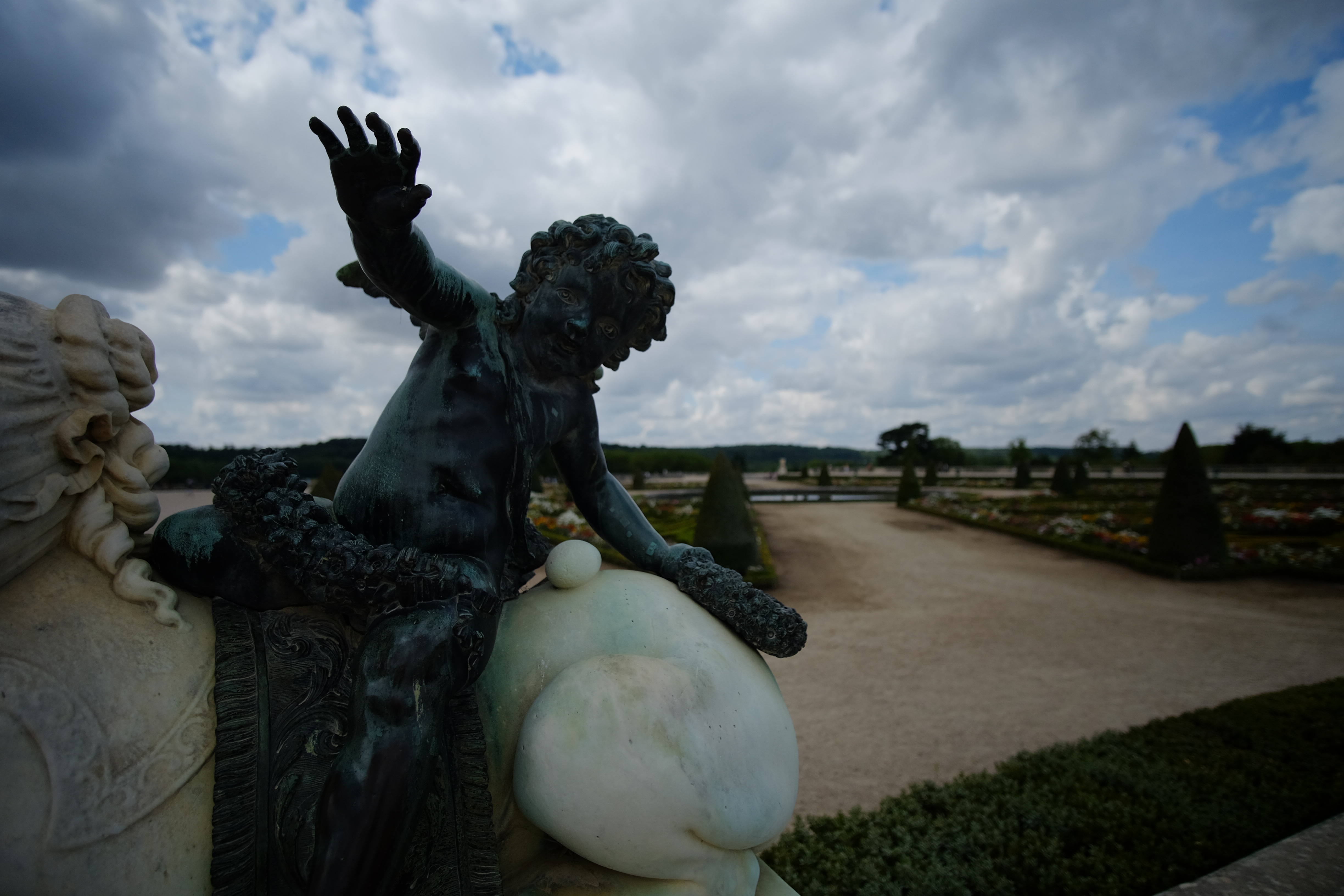 Our goal was to reach the Grand Trianon, a lesser-known palace at the heart of the park, so we walked towards the Grand Canal, crossing through the many coves that stood like a maze, hiding a fountain or a statue in their midst. The further we walked, the more we realized that the park was absolutely enormous. The crowds were getting thinner too, which was only incidental. It seemed many a tourist had been discouraged to explore the area at length.