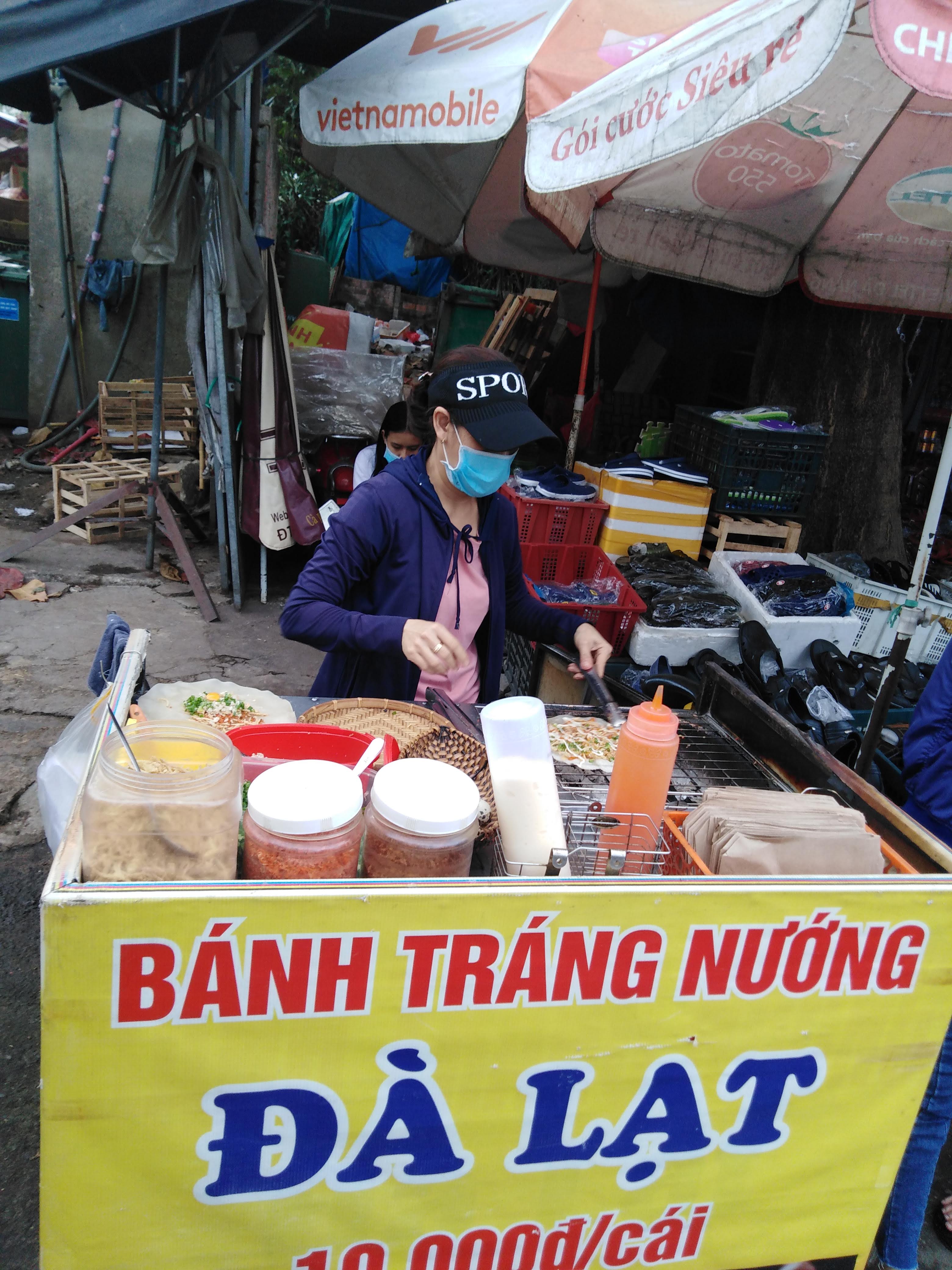Also, I love to have some Banh Trang Nuong, which is called “Vietnamese pizza”. However, it doesn't seem like a pizza at all! It’s just a rice paper grilled with some toppings (like Vietnamese sausage and egg), but it’s very tasty!