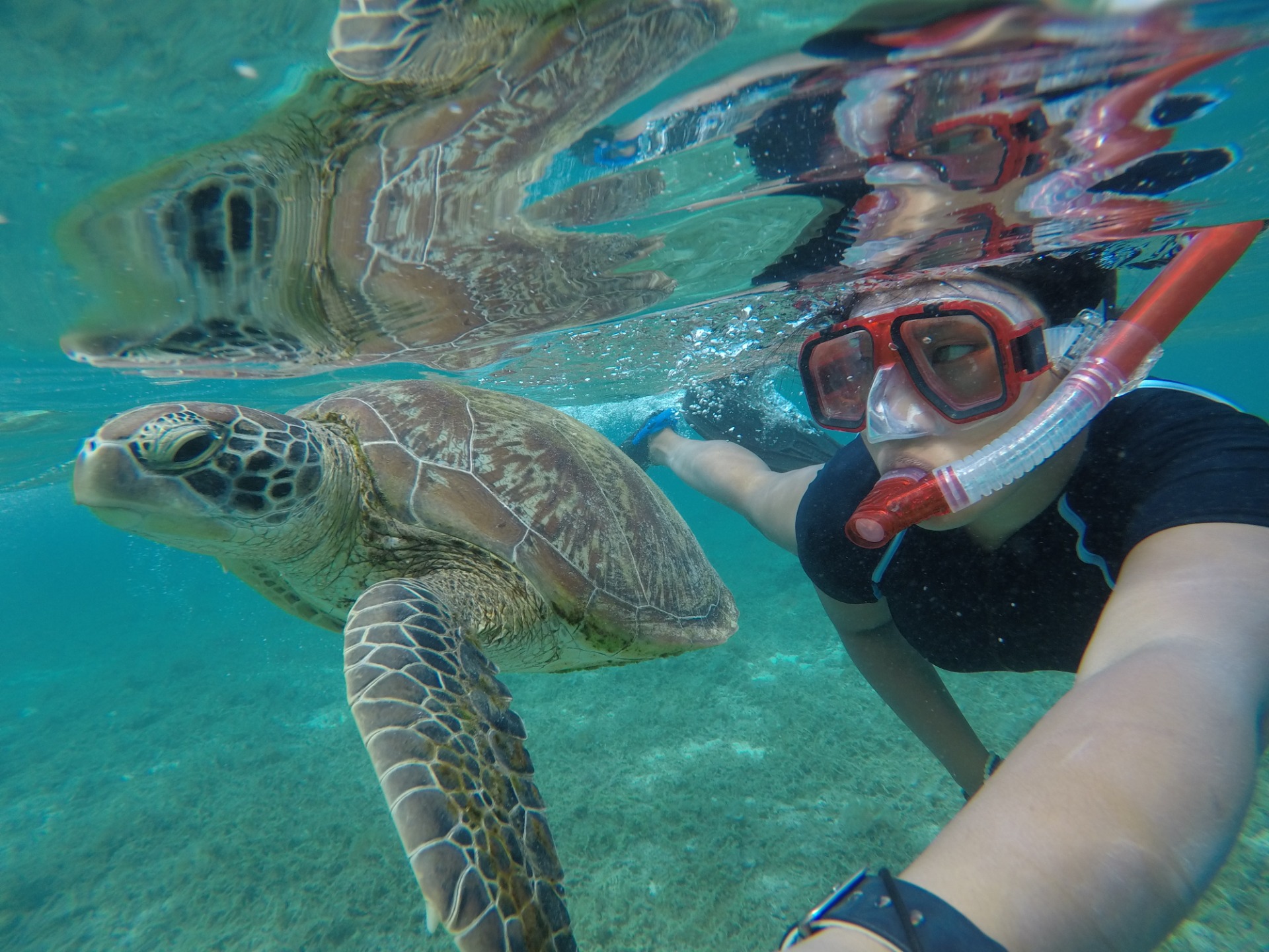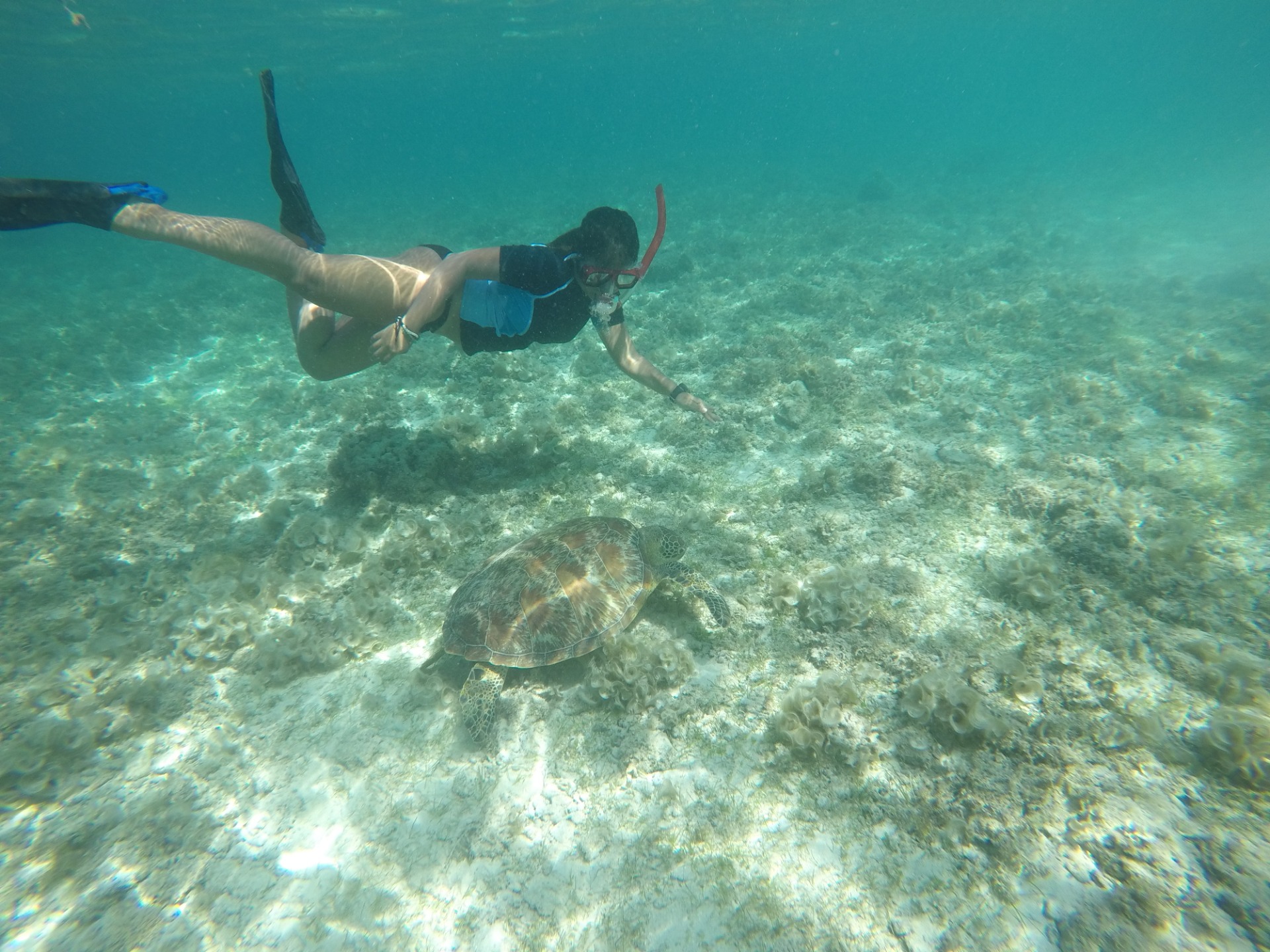 After being able to learn to free dive, I am now able to swim side by side with the turtles which is totally badass! Turtles here at the Panagsama beach have been used to the human species lingering alongside them. So it doesn't really  bother the turtles anymore if one gets too close to them. Just don't touch them. A golden rule.