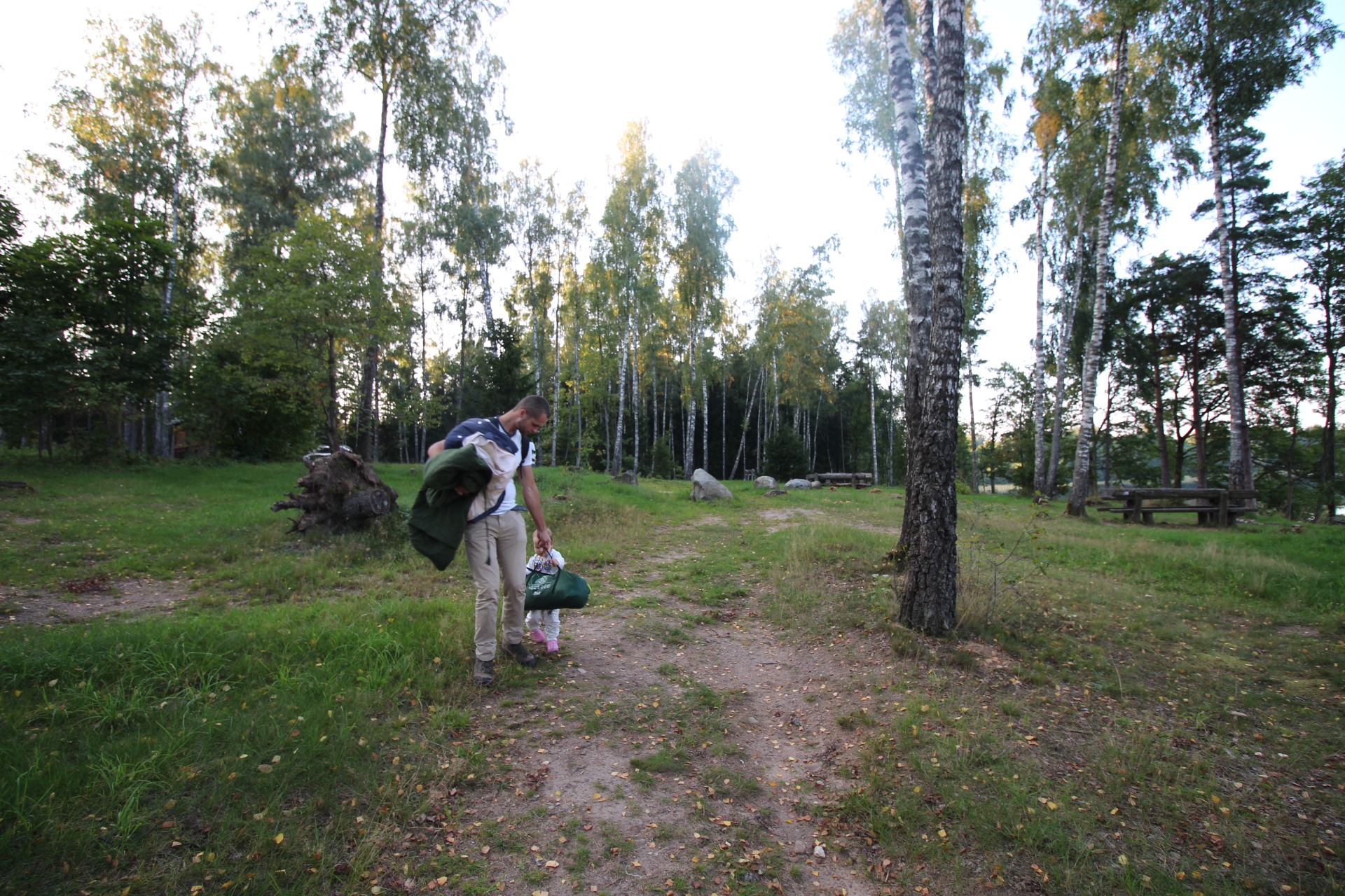 Morning in Lithuanian wilderness: Camping with my wife and child!