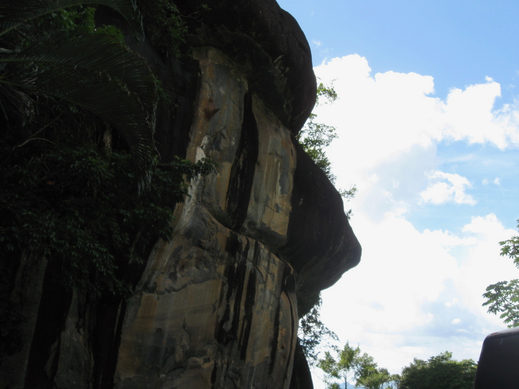 Leaving the dangerous town behind, at kilometer 98 we found a very interesting pre-Cambrian rock formation, called the Stone of the Virgin (there is a small sanctuary at the foot of the stone dedicated to the Virgin of Lourdes), she indicates the entrance to the Grand Sabana. Here one can find toucans and a spring of fresh water. It owes its name to that for many connoisseurs it resembles the silhouette of the virgin Mary. I don't know, in the picture I took, I saw a profile of a giant of stone that looks towards the horizon.