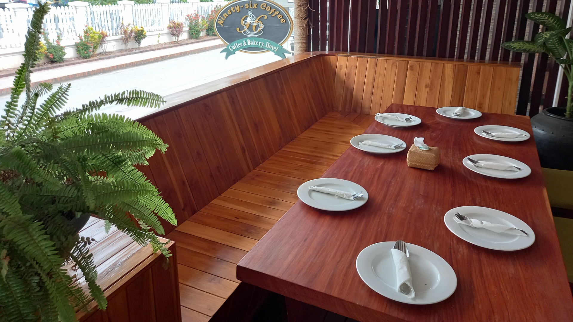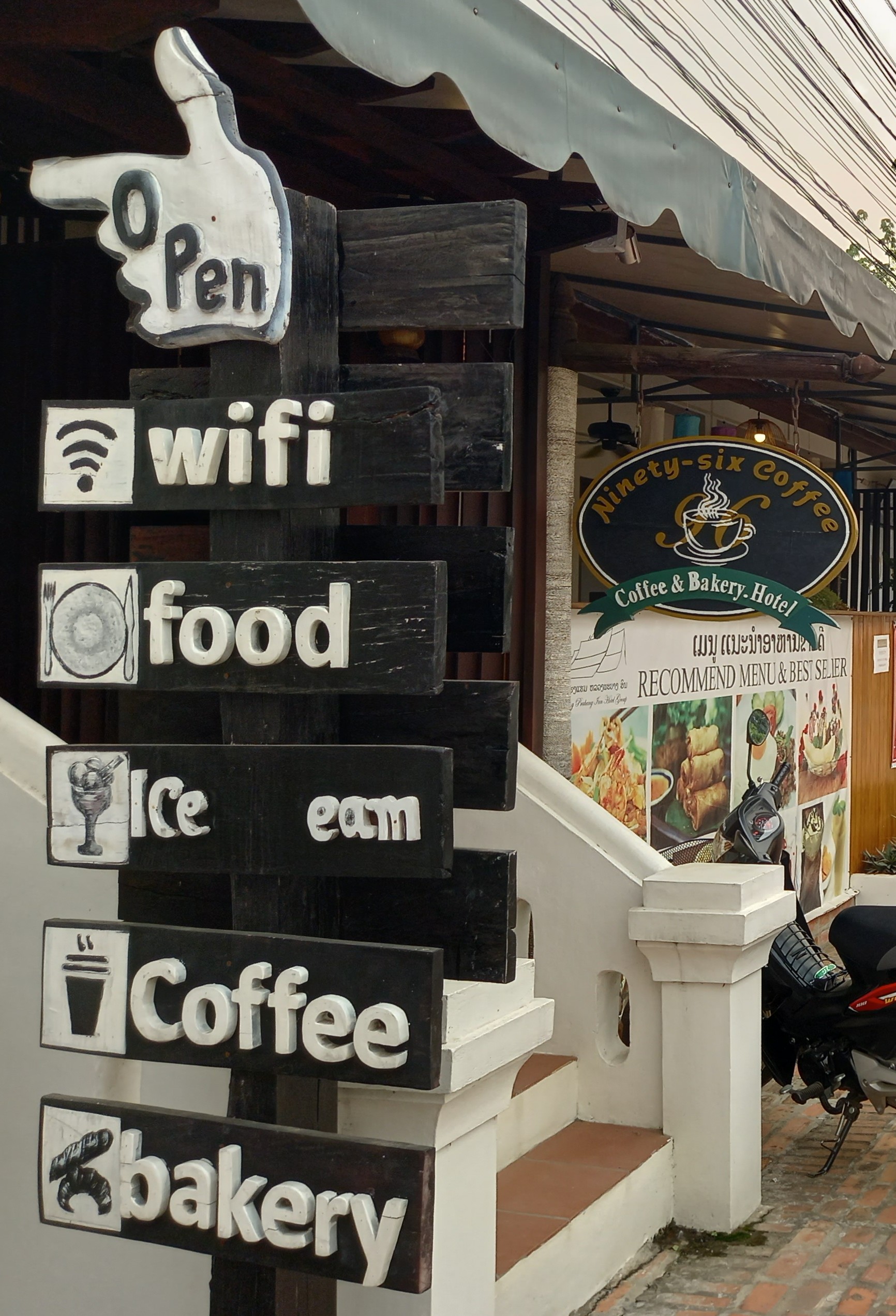 Here is the sign from the outside. It's just down the street from the hotel with the tennis courts. Thanks for checking out another great place in Luang Prabang with me today. Have a good one!