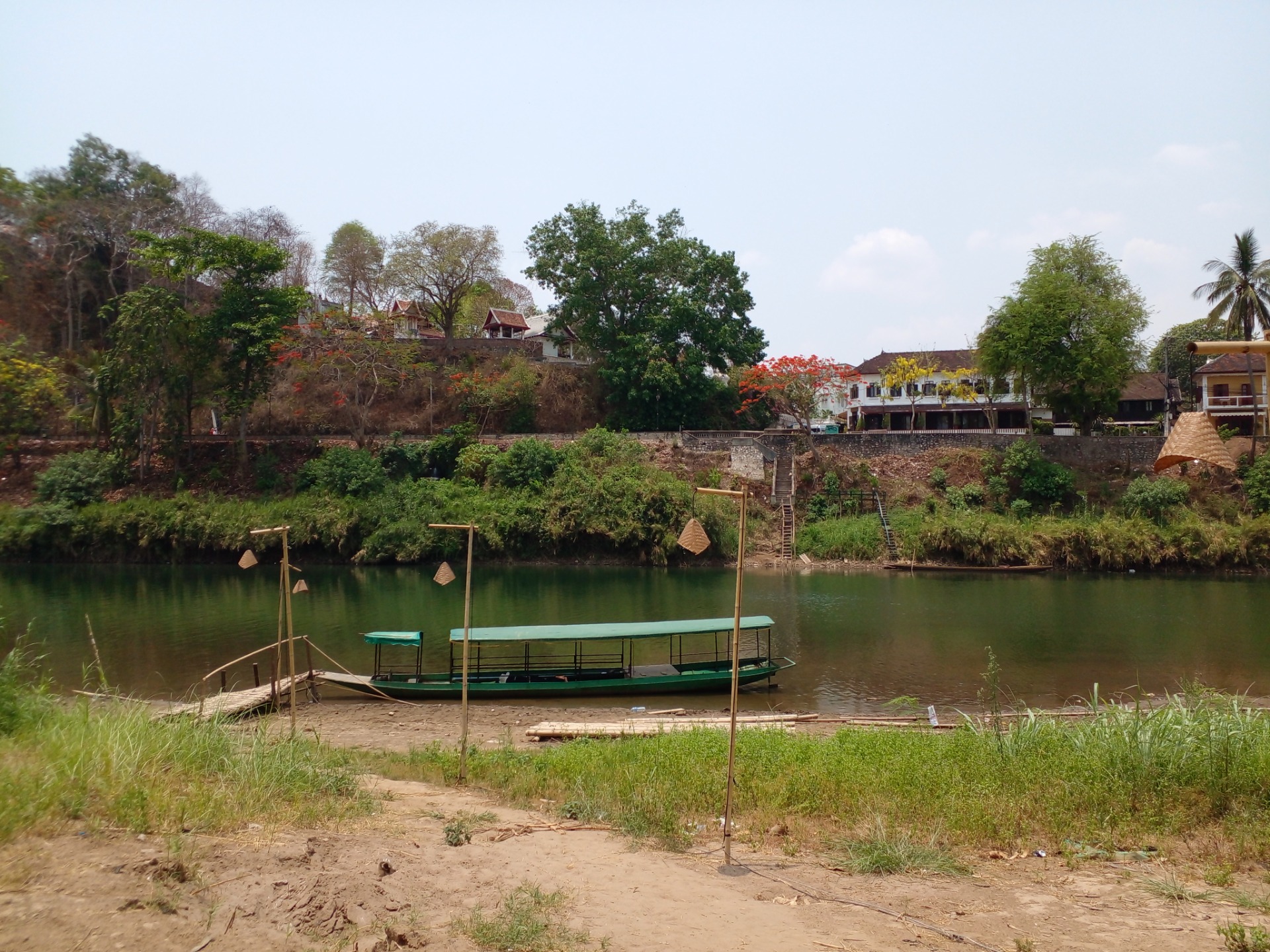 Across the Namkhan River from downtown, there is this nice little jewelry shop where you can not only buy locally made bracelets, necklaces, rings, and earrings, but you can learn how to make them yourself. There used to be a bamboo bridge here, but you can still use the boat service or even swim. It's not that deep or strong of a river so I've swam across many times to avoid paying anything. Even my dog can swim across this easily. Most people prefer to stay dry and pay the boatman though.