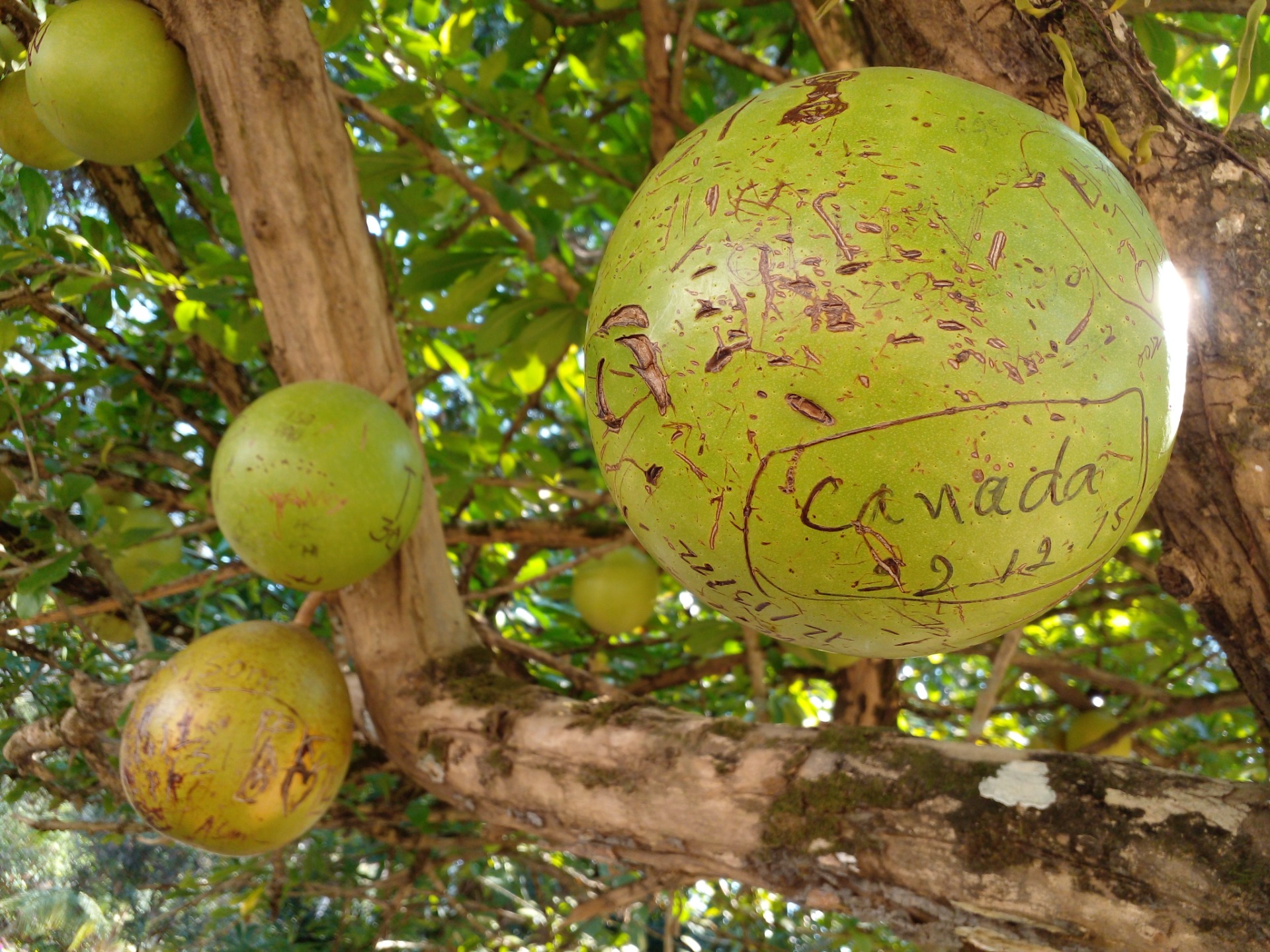 I guess there's no harm in tourists writing things on these coconuts because somebody will just eat them eventually.