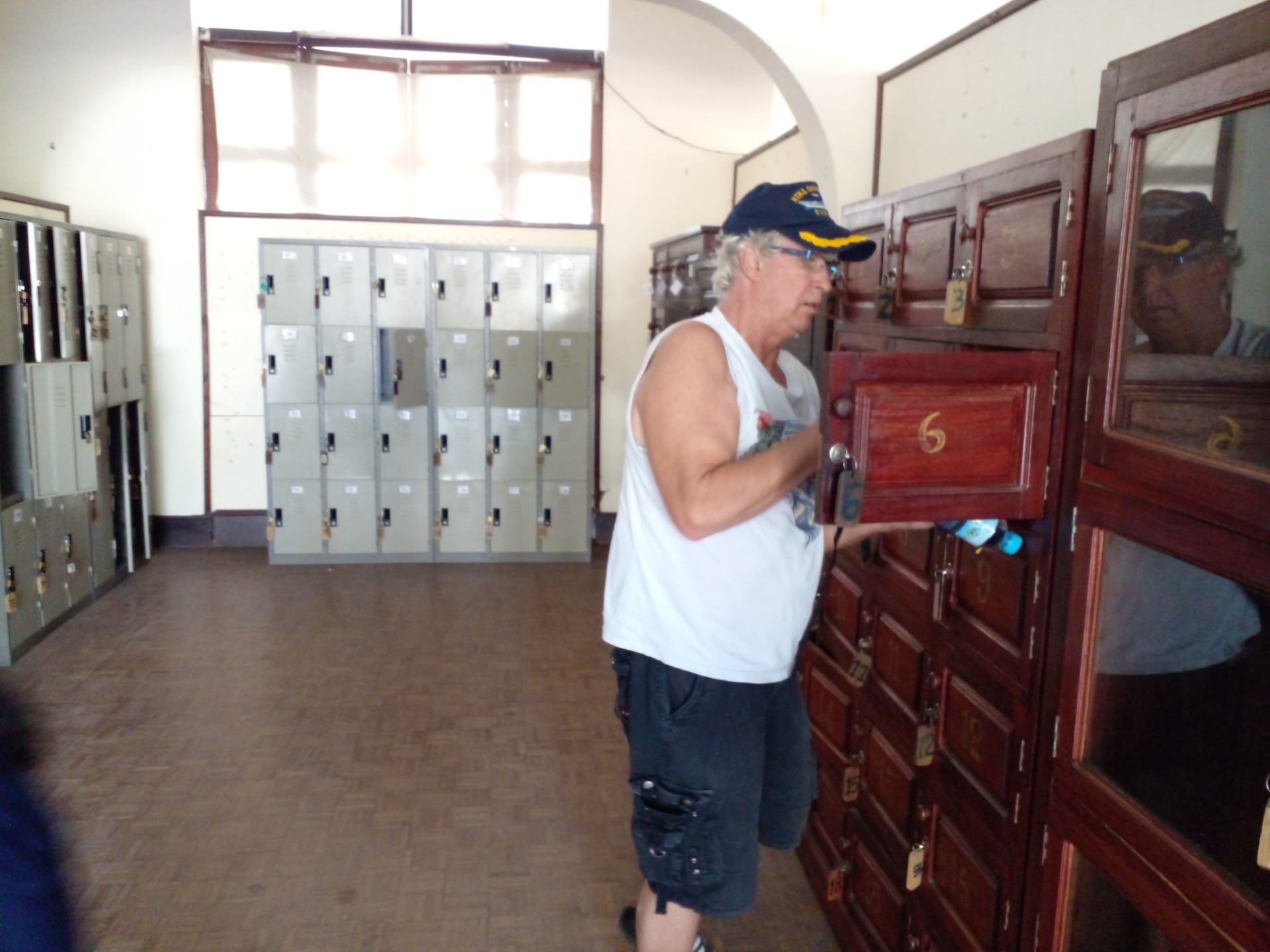 They must have had a problem with tourists stealing ancient artifacts from the museum in the past so they ask you to secure your bags and cameras before entering. It's disrespectful to enter with a tanktop on so they asked my friend to rent a nice shirt before going in. It only cost him 5,000 kip which is about thirty cents.