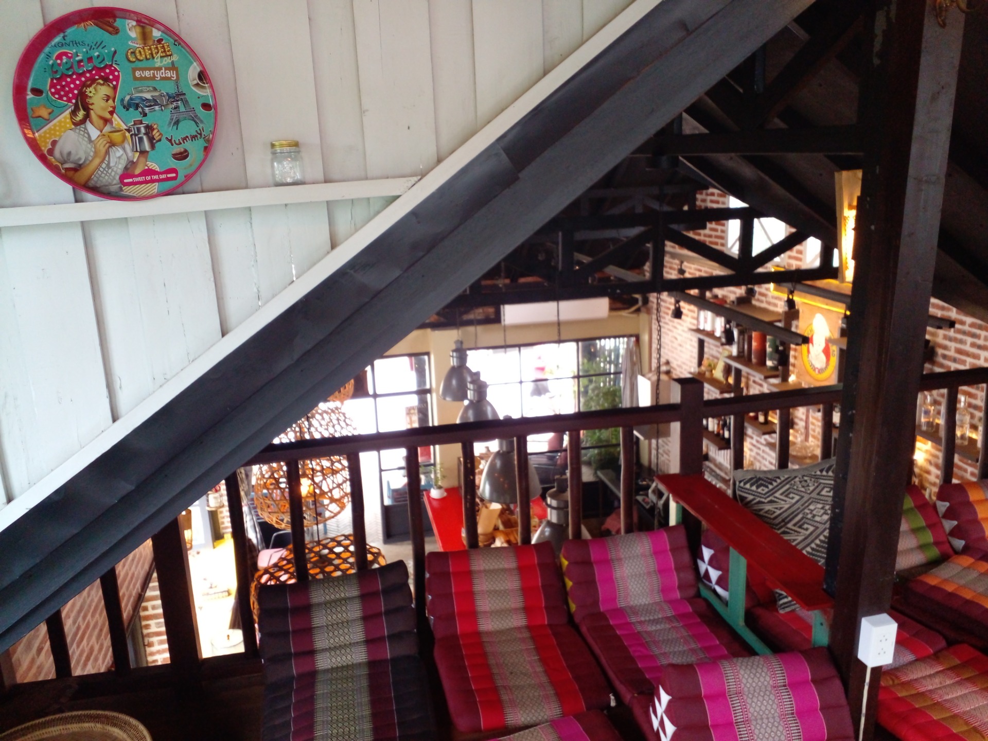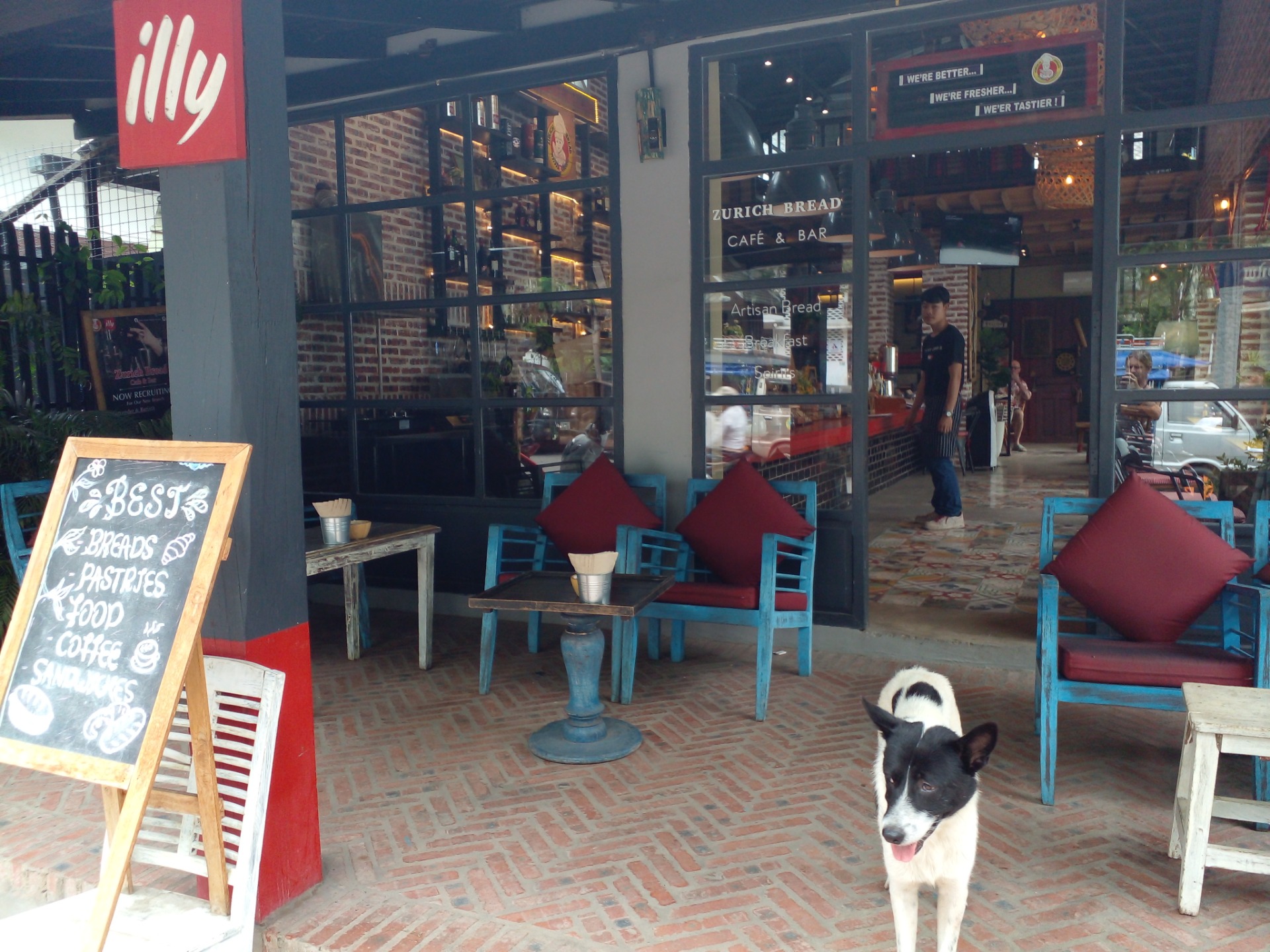 You can also lay down and enjoy your meal on these Lao style sofas. Rapper thought he could relax on them too, but I told him they're not for him. He's a clean dog, but like all dogs he sheds. Thanks for checking out Zurich Bread Factory & Cafe with us today.