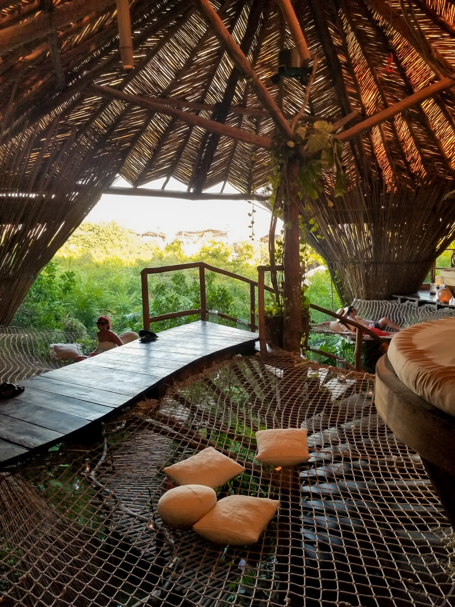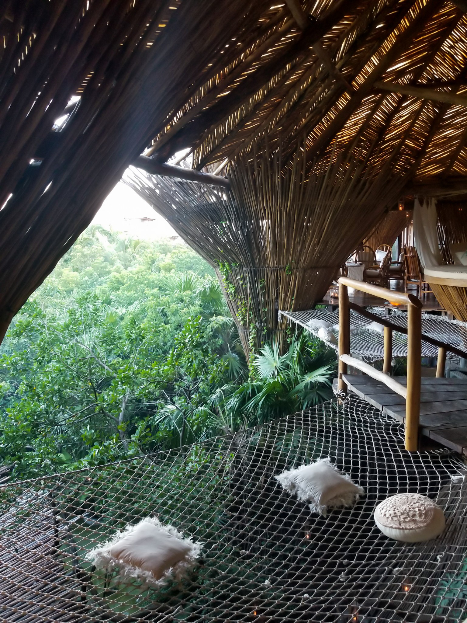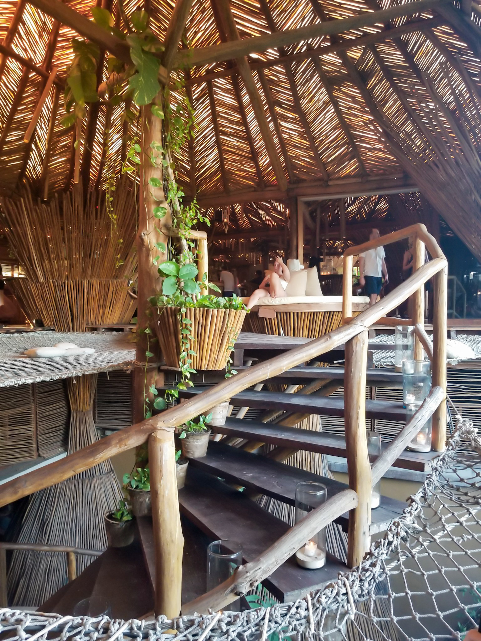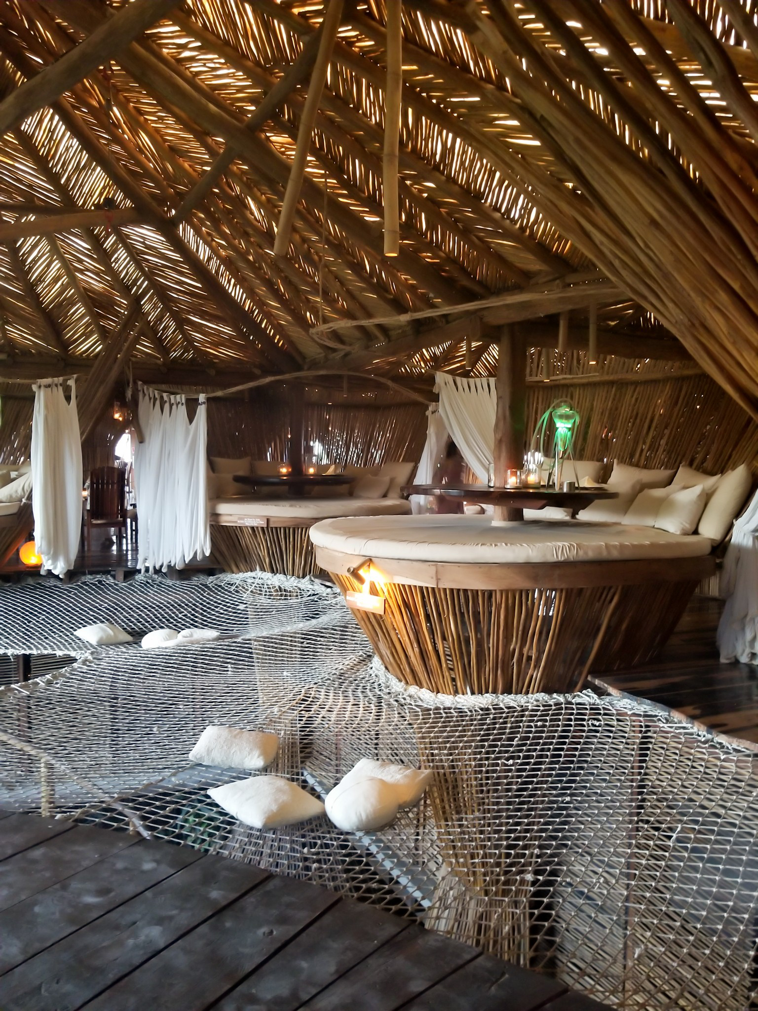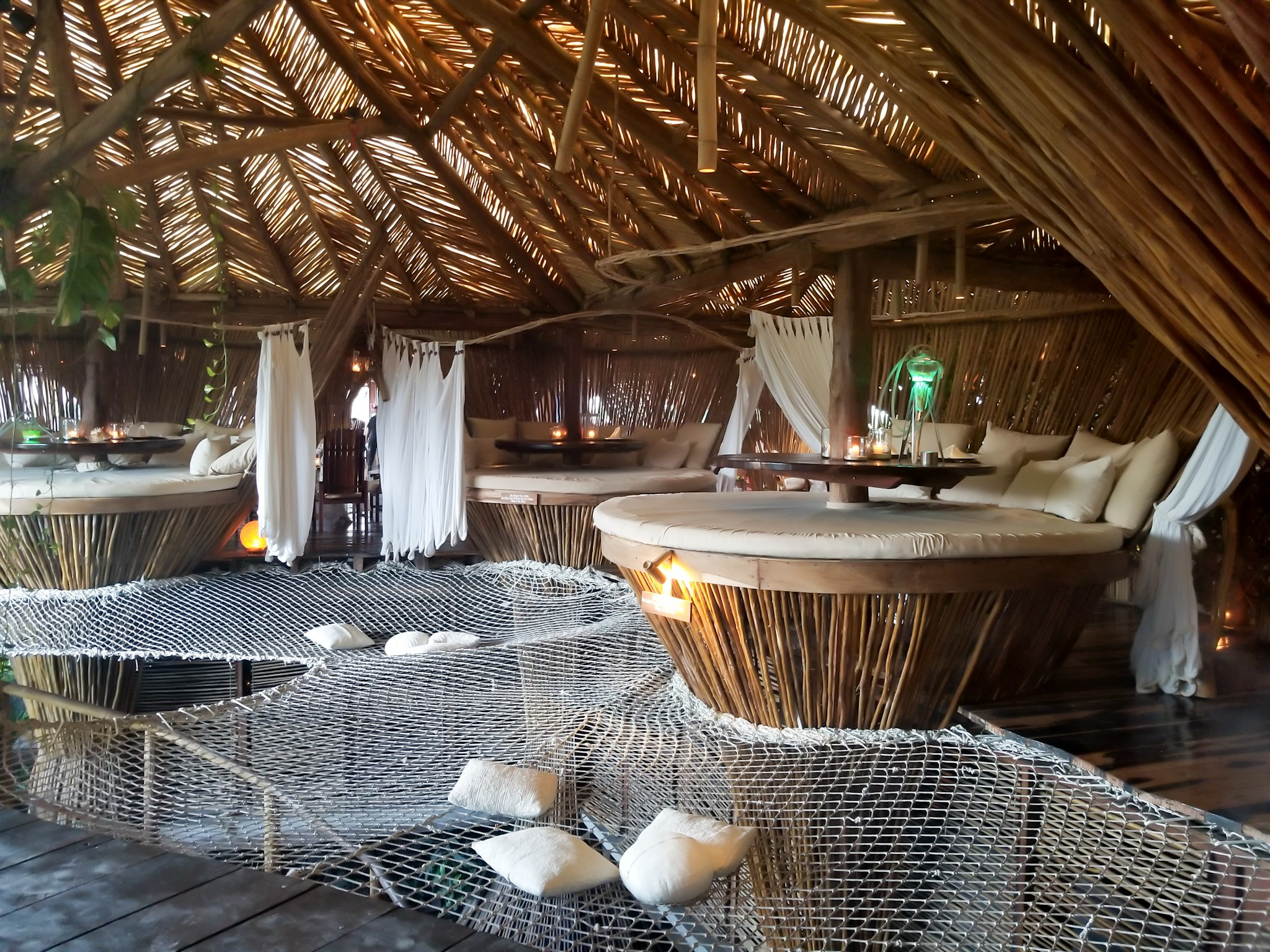 Once you reach the bar, you will see floating nets everywhere. Imagine a hammock, but way bigger. There are cushions to make yourself comfortable while you peruse the drinks menu.
