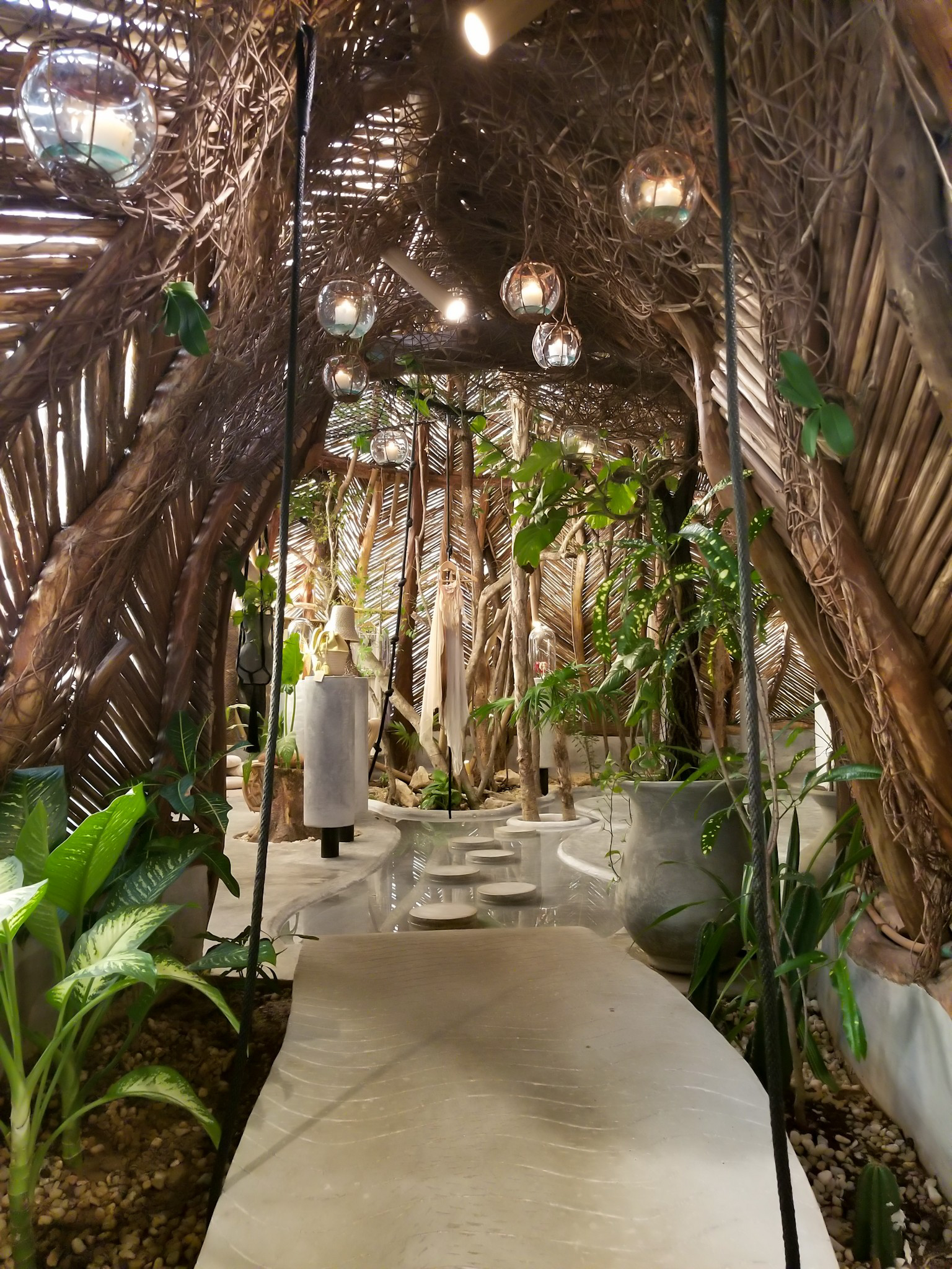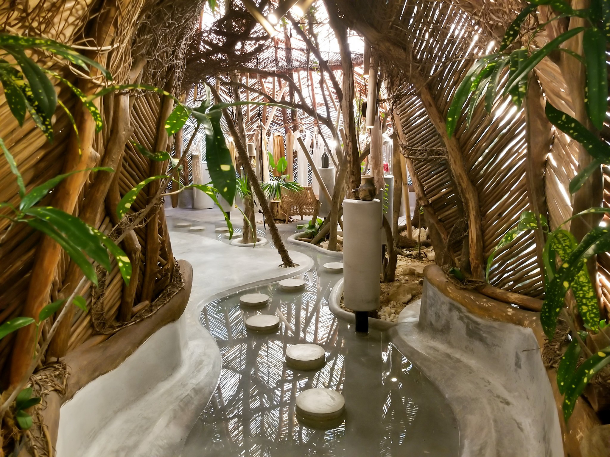 From the minute you arrive at Azulik, you know you’re in for a treat. The place is beautiful. A hostess will greet you at the front, and direct you to where you want to go. Once inside, there's a clothing boutique to your left, and an art gallery to your right. Upstairs is the bar and restaurant.