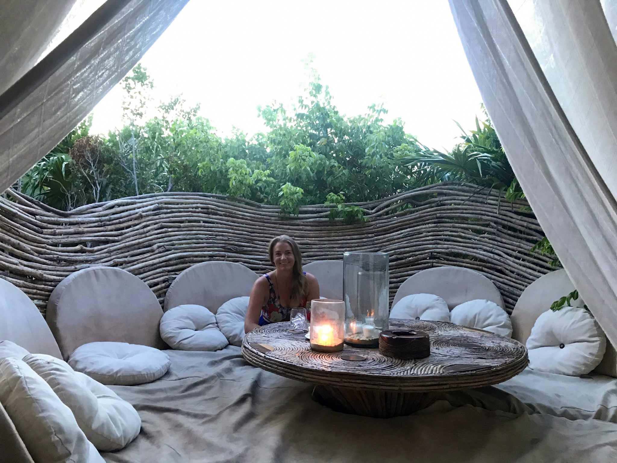 Once we had made our drink selection, we proceeded to a nest. We had a whole nest to ourselves! I can imagine in peak season, this would be near impossible without a reservation. We watched the moon rise up and stars come out, all while floating above the jungle.