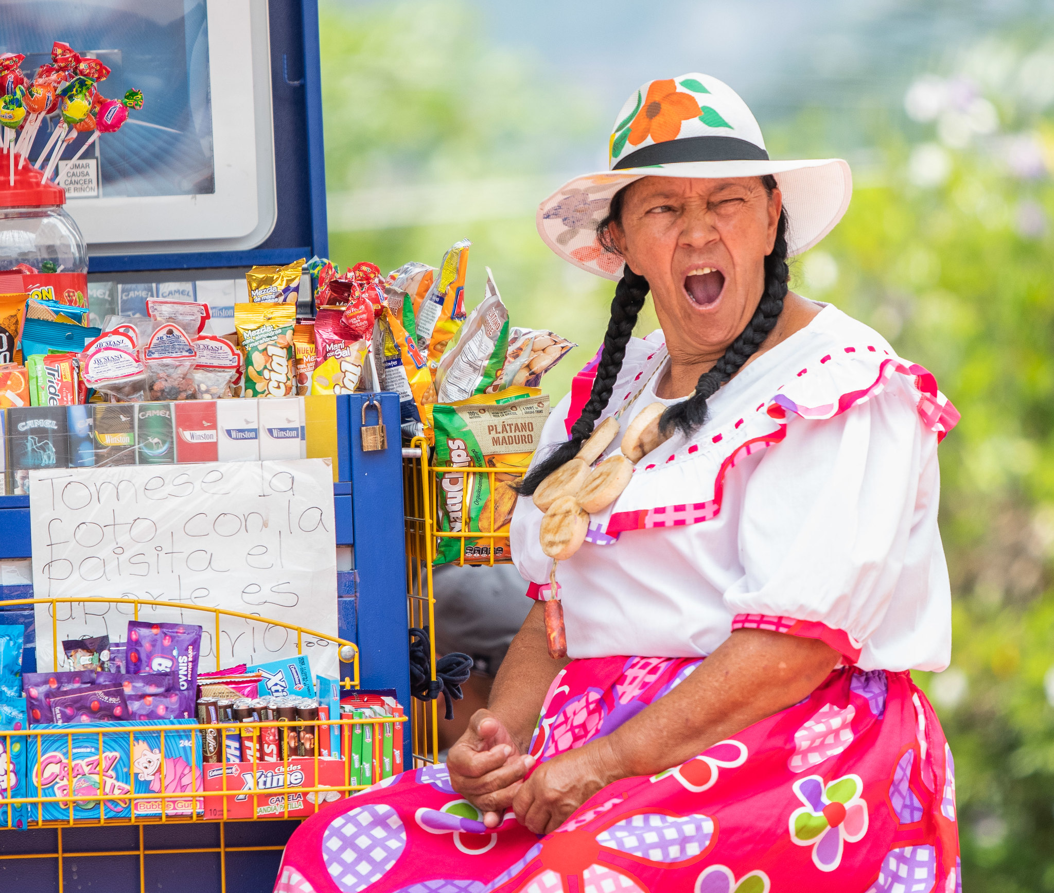 This señora in traditional clothing was selling some candies and offered to pose for a photo for a donation of a few pesos. I caught this candid moment after I already got the "official" photo: