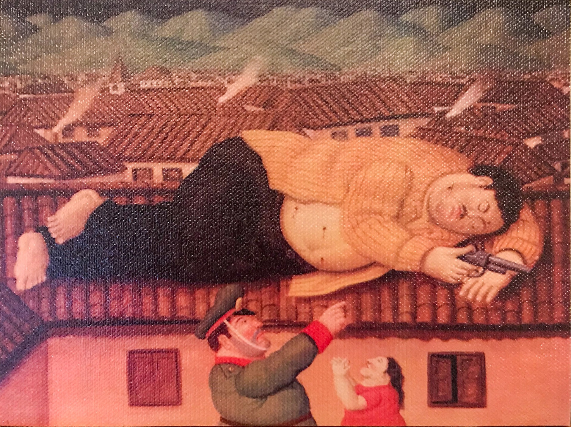 After taking an impossible amount of photos of the doves, I did finally make it over to the little shops and ended up buying a ton of really cool souvenirs. My favourite one was a reprint of the famous Colombian artist Fernando Botero who is known for his paintings and sculptures in which he depicts his subjects with exaggerating volume (ie. fat). The little painting I bought featured the infamous Pablo Escobar in his last fateful moments atop a Medellín rooftop as he tried to escape from the long arm of the law.