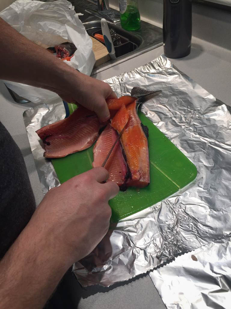 Back home, I start cleaning and filleting the trout which keeps me busy for 2 hours. Yes, I'm a rookie, but I won't lose any of this beautiful pink meat.