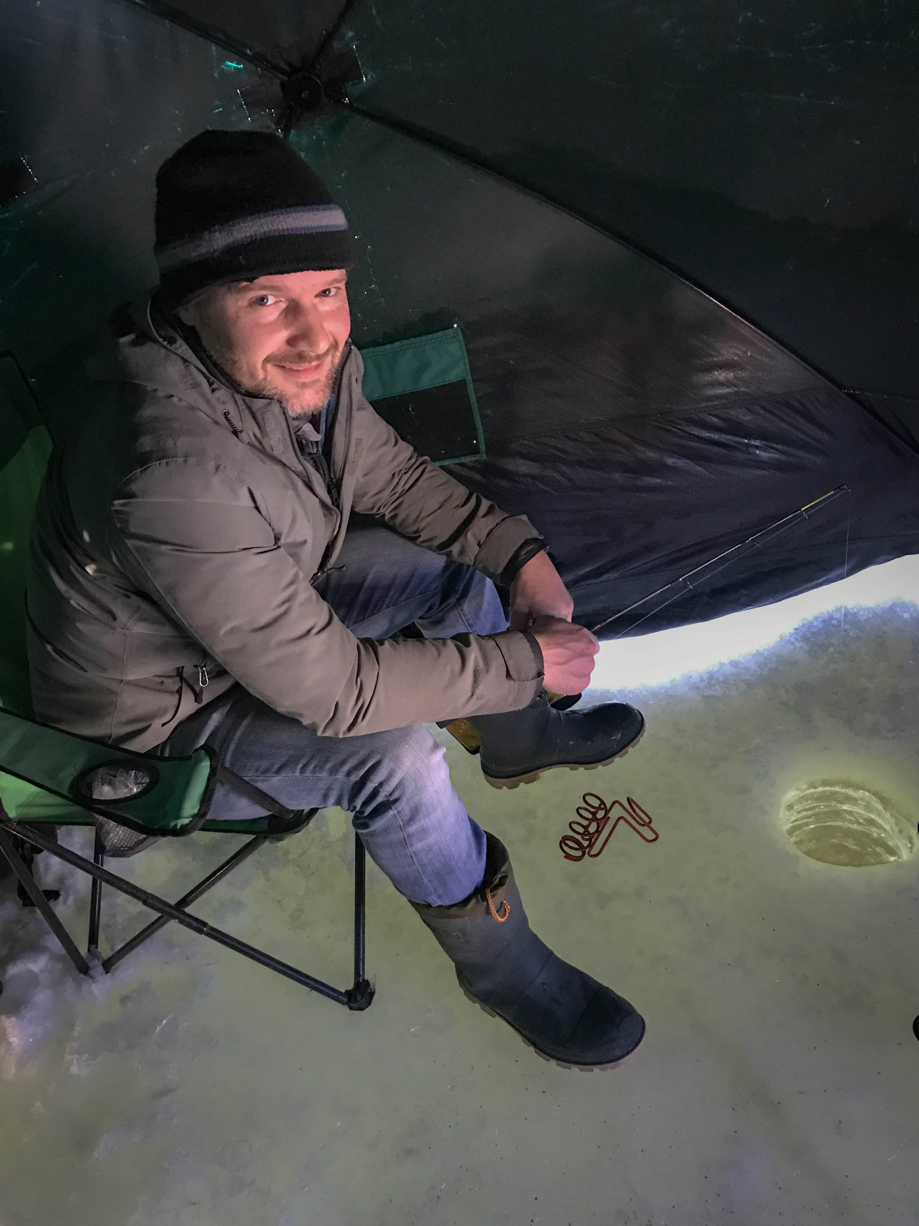 Fortunately there is one winter activity that I enjoy and that is ice fishing. The idea that you can lounge in a warm little hut on top of the ice while the fish come to you is simply amazing to me. There is nothing quite as gratifying as pulling a big old trout through that hole and on to the ice!
