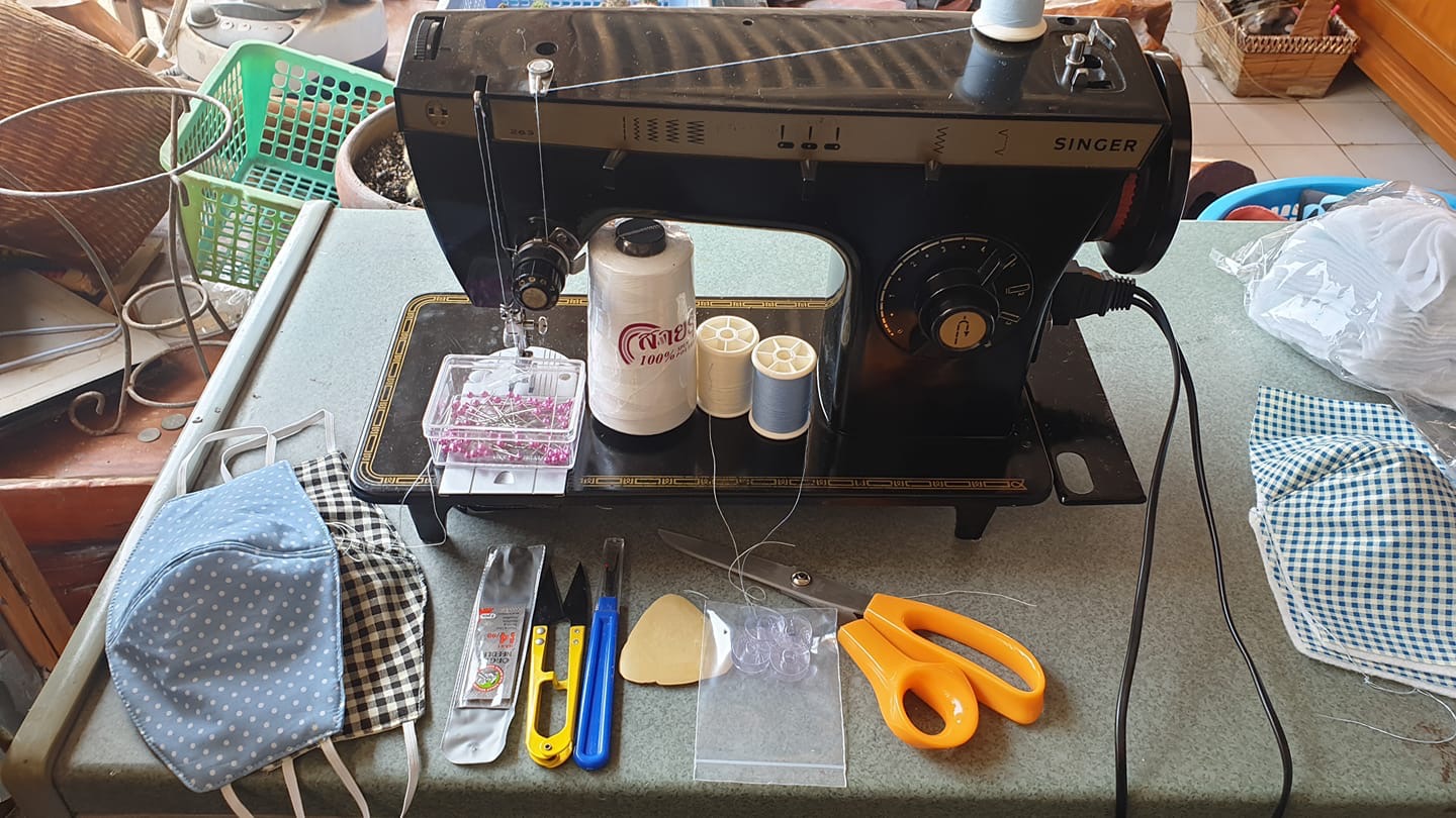 In Thailand, and I am sure other countries, we do our best to use the tools that we have to make a mask using cloth, sewing machine and more.