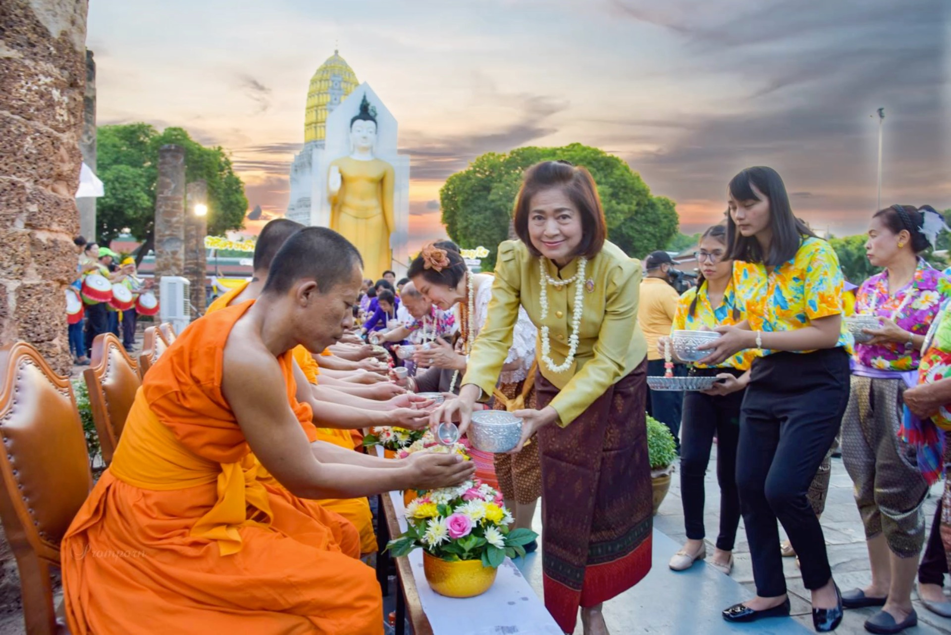 Thai New Year is not only a time of celebration but to give thanks and ask for blessings. One of the unusual aspects of this temple is they have a gold-covered statue of the Buddha. The temple is located in Phitsanulok province which is around 210 miles from Bangkok.