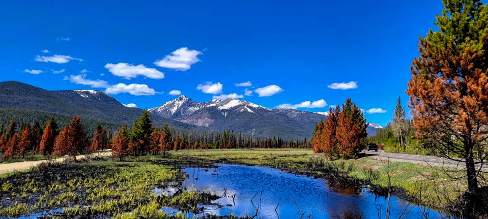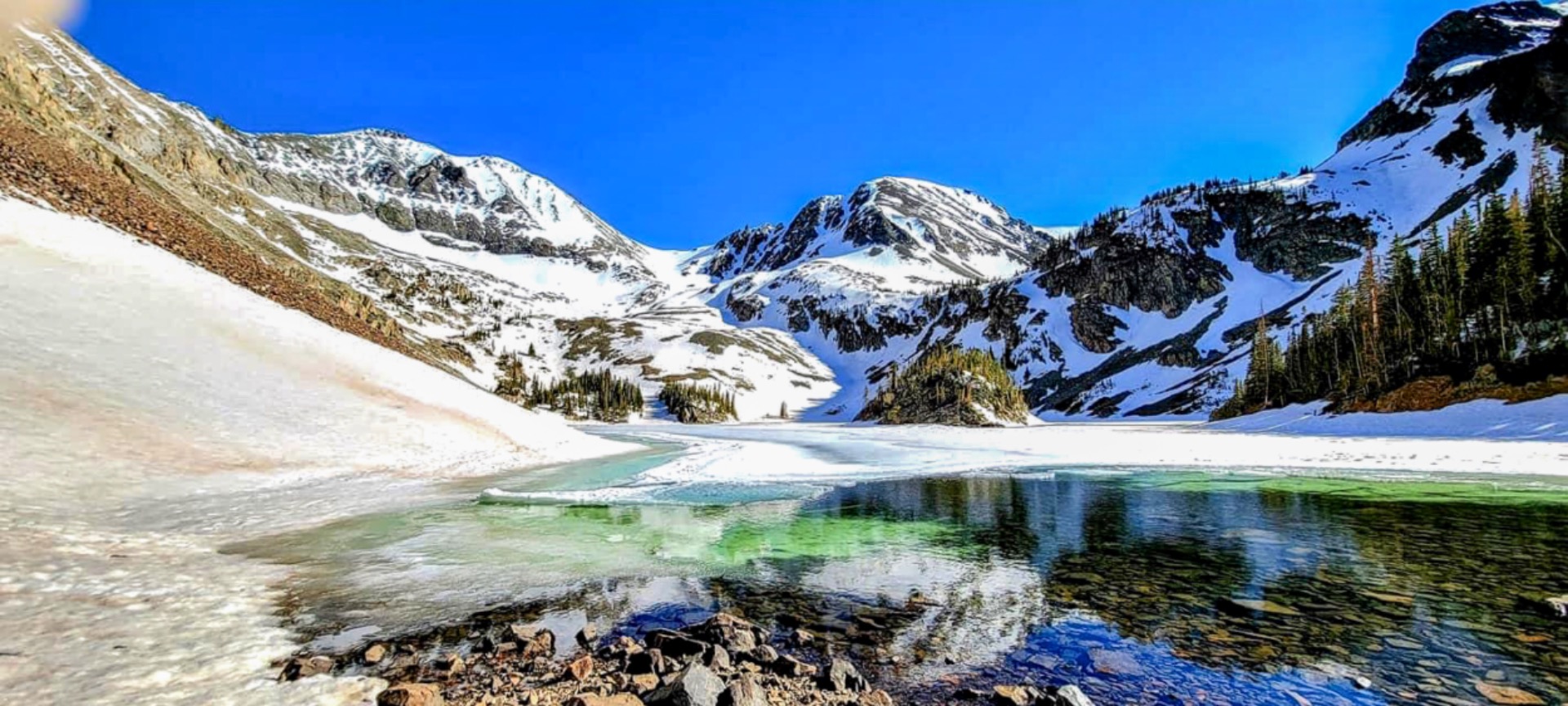 The snowy landscape on a mountain top can still be done in the spring time since the snow has not melted and the weather is pleasant. I must warn you that weather can change very quickly and backroads can be a bit challenging when that happens.