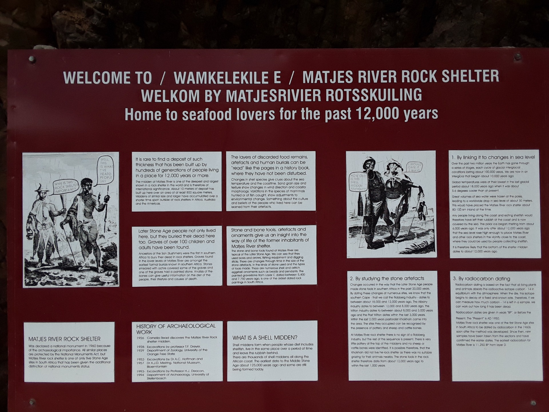 In today’s adventure hike along the south Cape coast of Africa, I was able to add an educational element by revisiting one of my favorite spots on these shores – Matjies River. At this little hidden beach, there is an epic historical and archaeological site said to be the ancient home of the original indigenous inhabitants of this coastline – The Khoi bushmen.