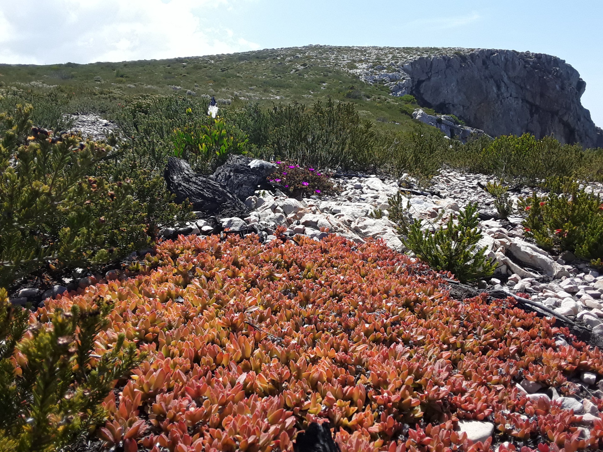 Some more of the curiously exotic indigenous succulents of this Fynbos floral kingdom on the cliff top, facing east.